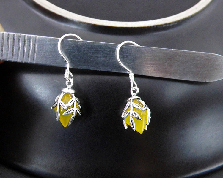 925 Sterling Silver Silver Garnet yellow Agate Earrings Earrings lady flowers drop shaped leaves