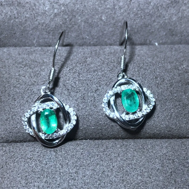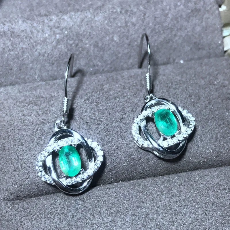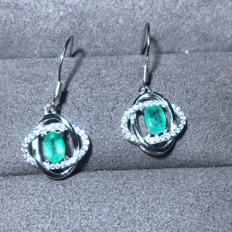 Fine Jewelery 925 sterling silver beautiful real shot natural emerald female earrings real precious precious stones ne