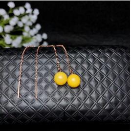 fine jewelry 925 pure silver wants natural honey wax, amber, female ear stud ear thread.