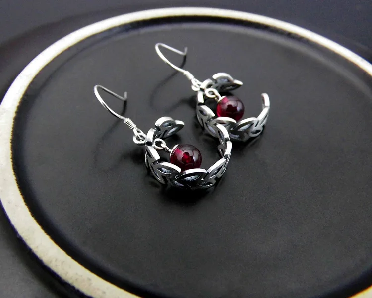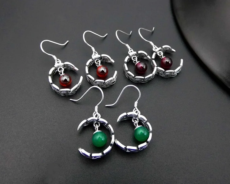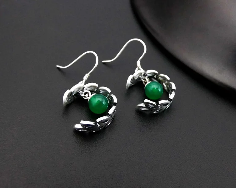 Fine jewelry 925 sterling silver agate garnet corundum green agate earrings fashion earrings