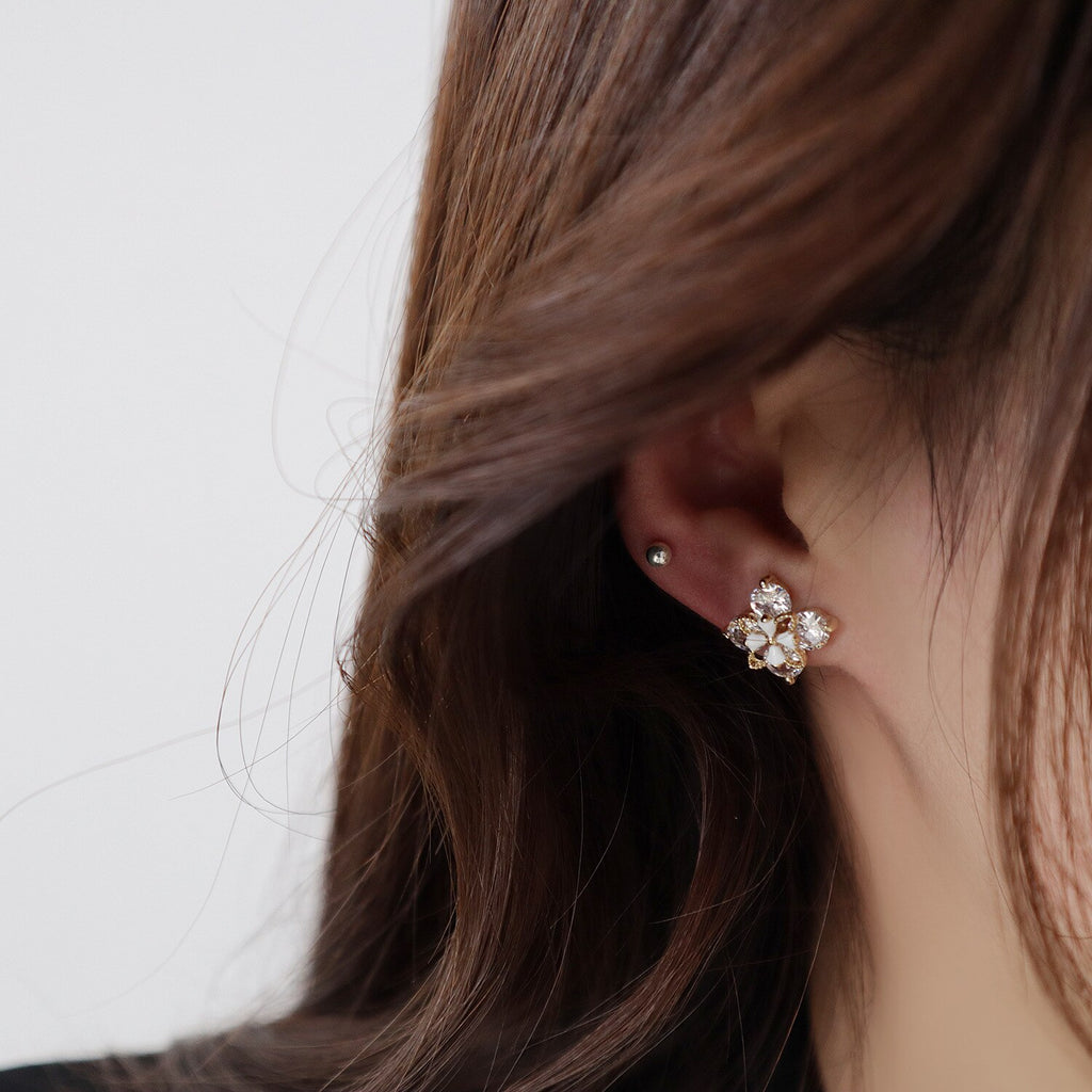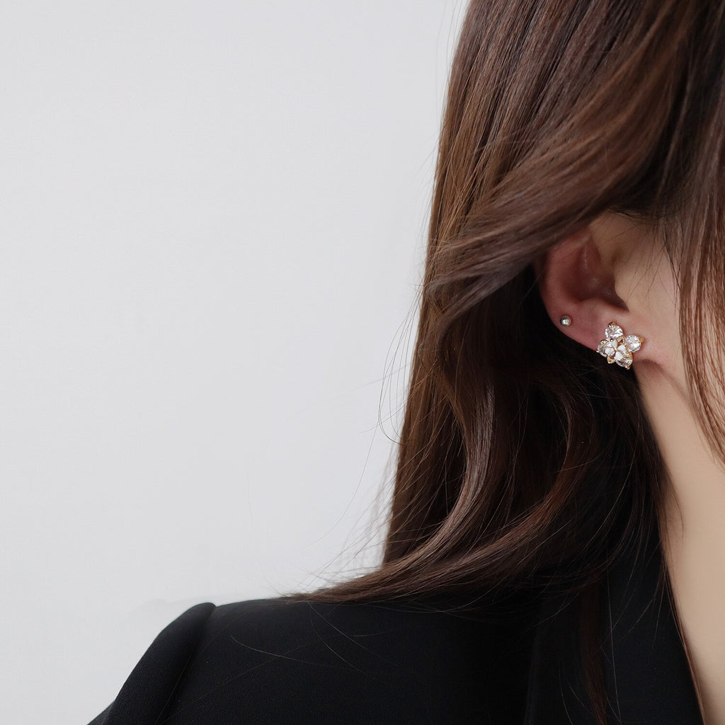 Korea Design Jewelry Exquisite AAA Zircon Flower Layered stud Earrings Elegant Women's White Oil Earrings