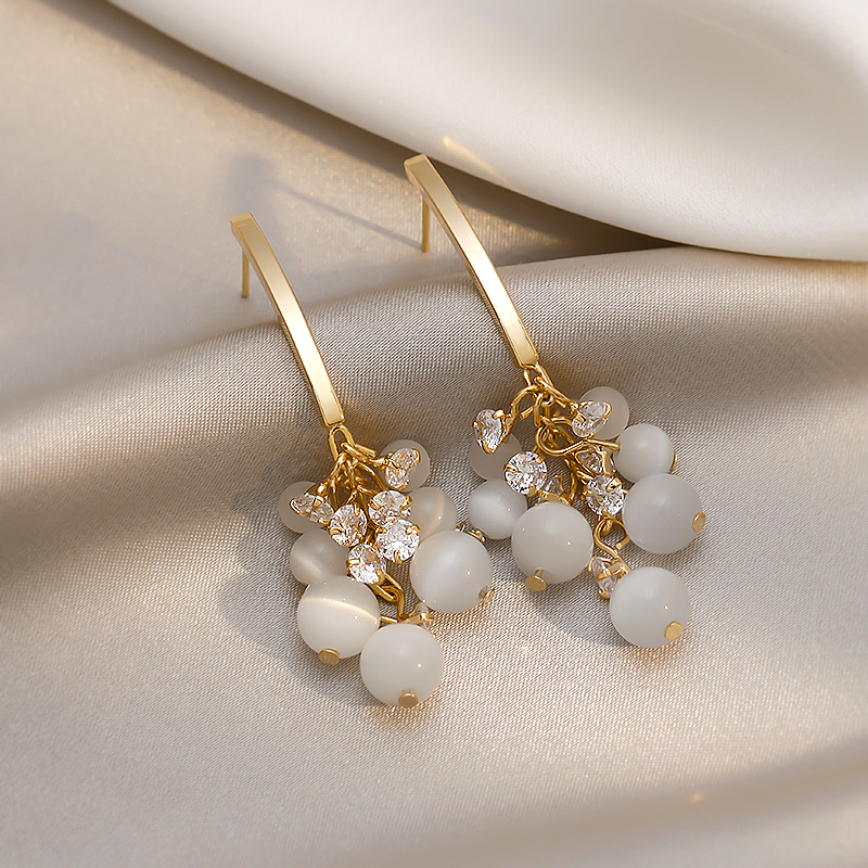 Korea Design Jewelry Exquisite Zircon Opal String Earrings Elegant Women Wedding Party Accessories Pendant Gift