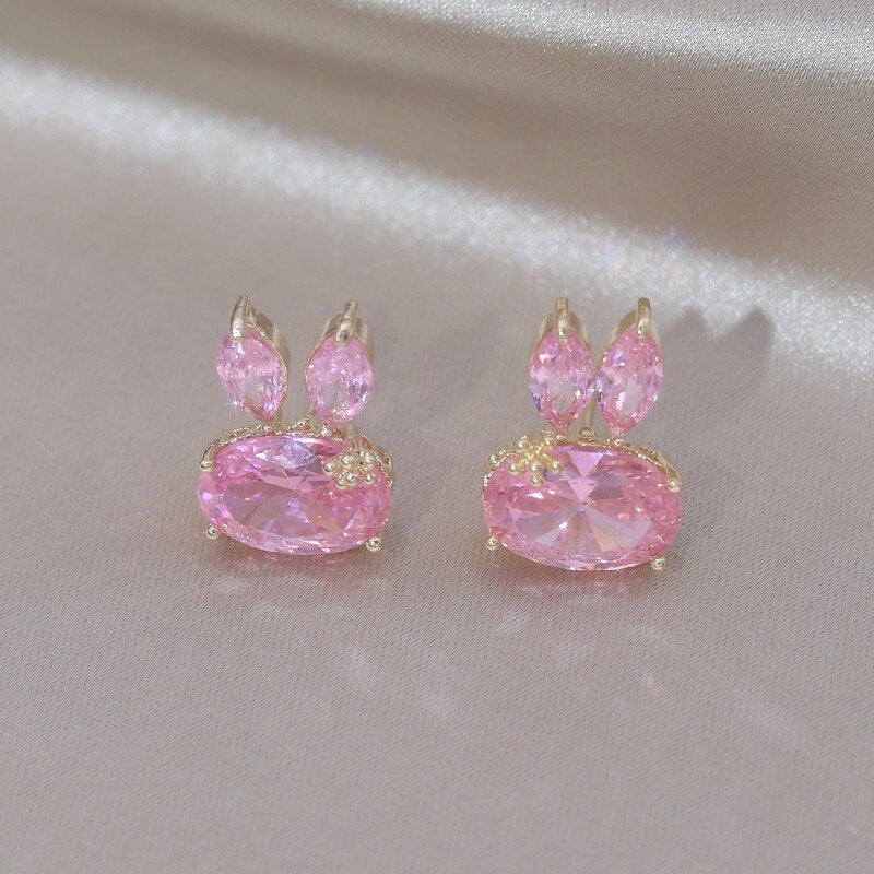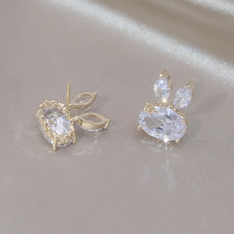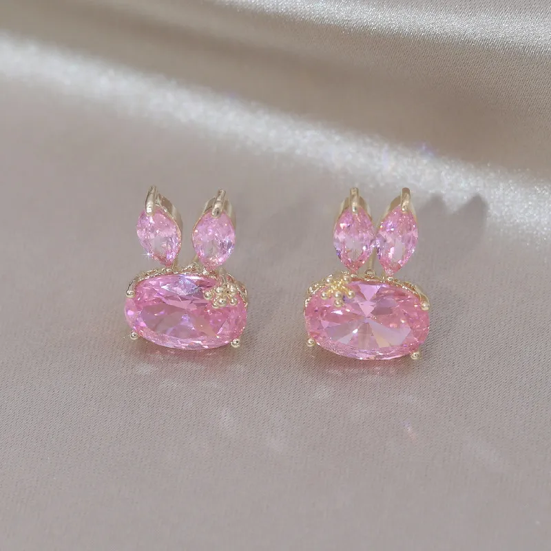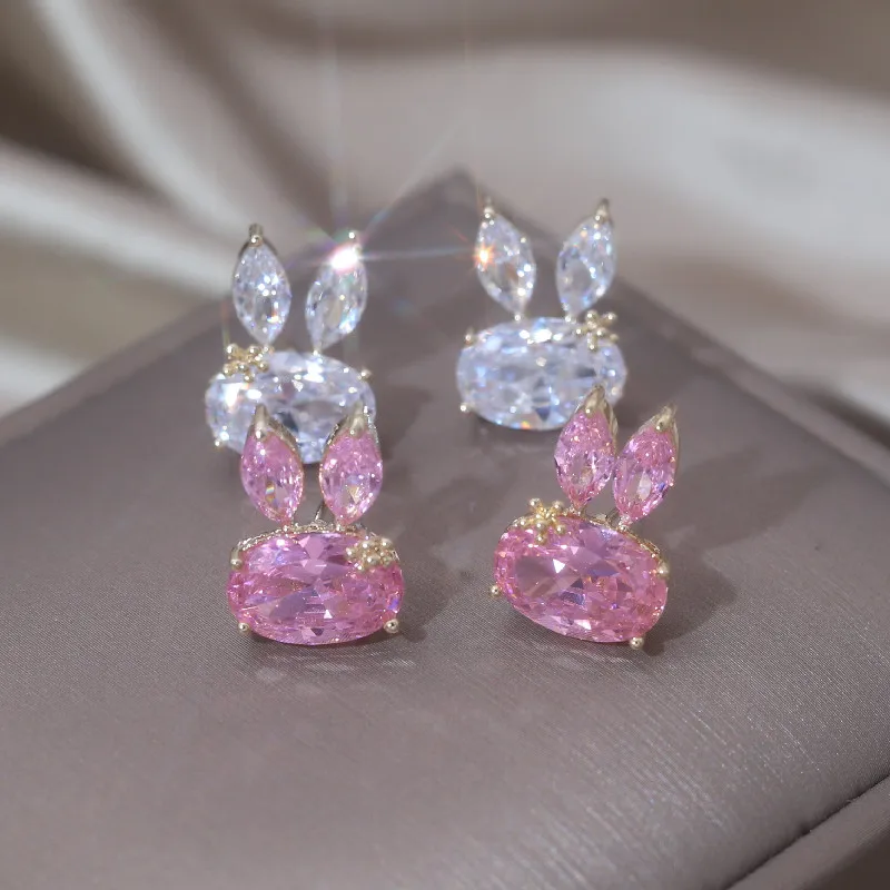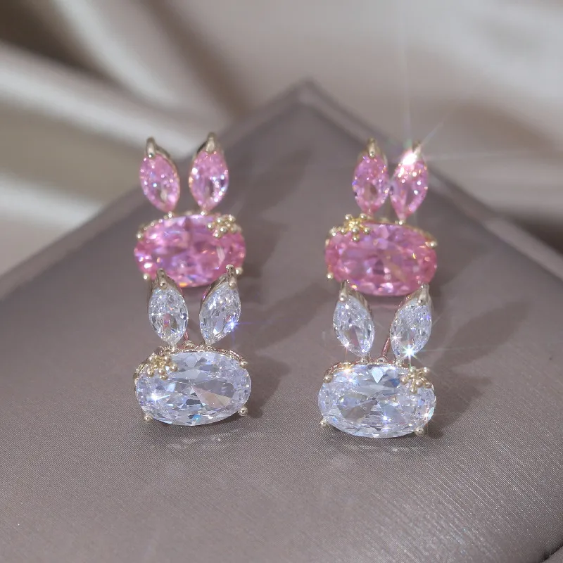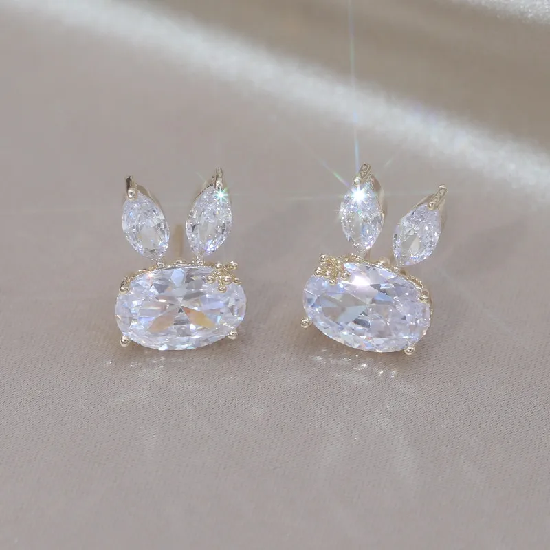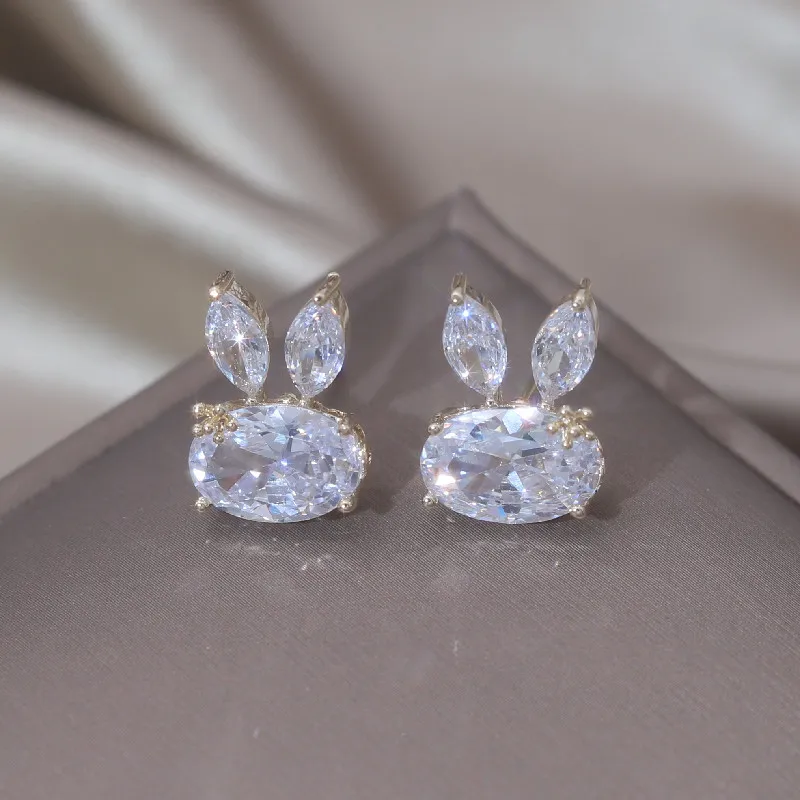 Korea Jewelry 14K Gold Plated Cute Rabbit Zircon Earrings Sweet Girl Gifts Elegant Women Daily Work Accessories