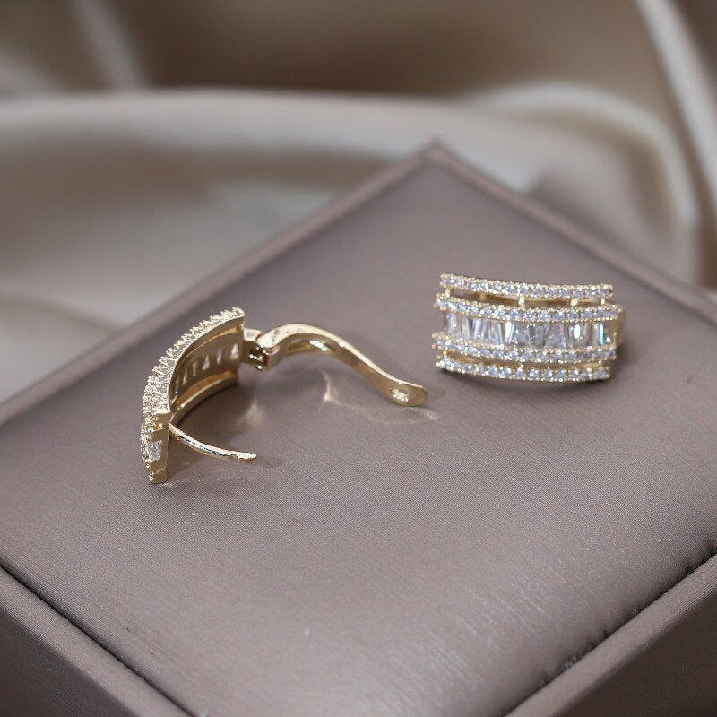Korean Jewelry 14K Gold Plating Multilayer Zircon Geometric Earrings Elegant Women's Daily Work Accessories