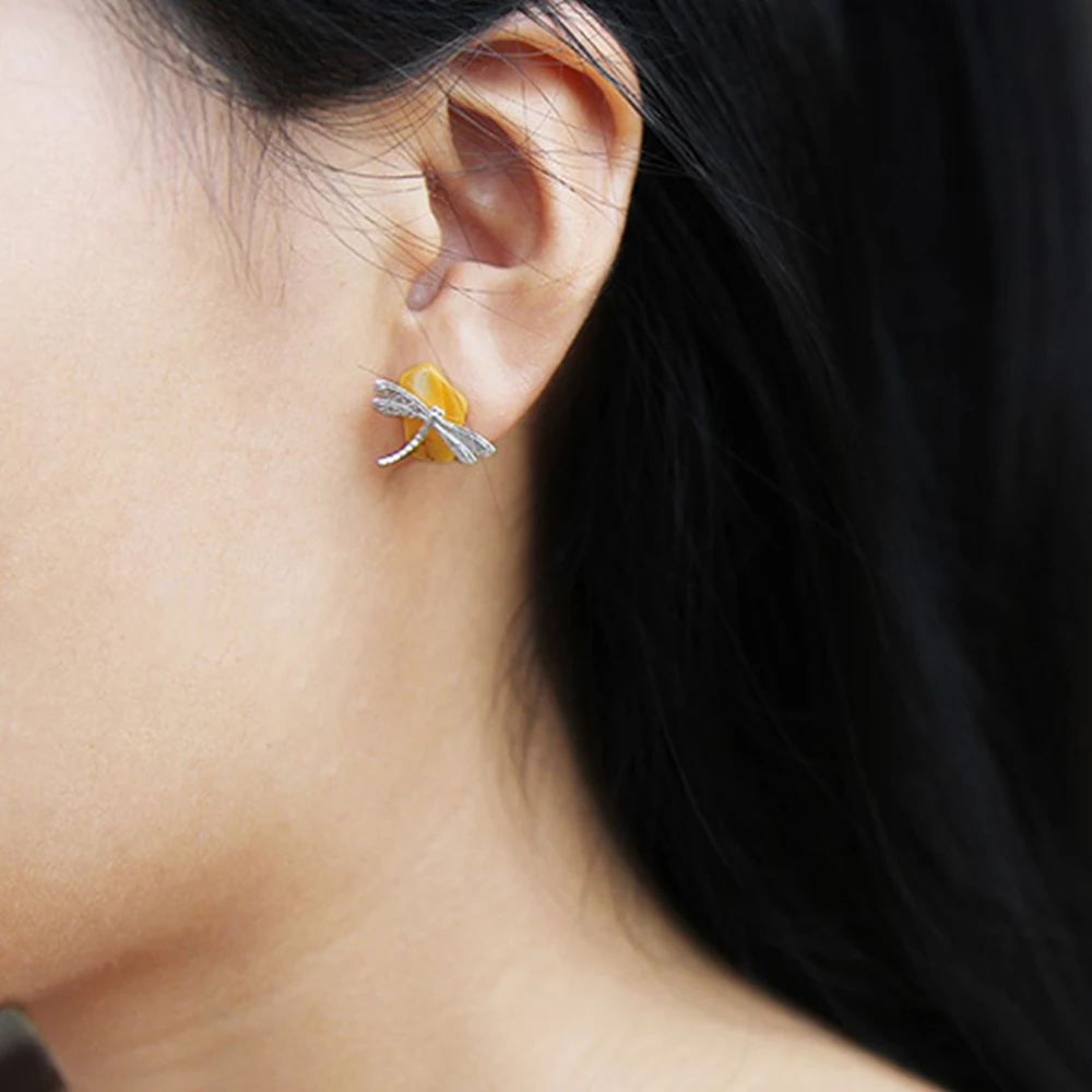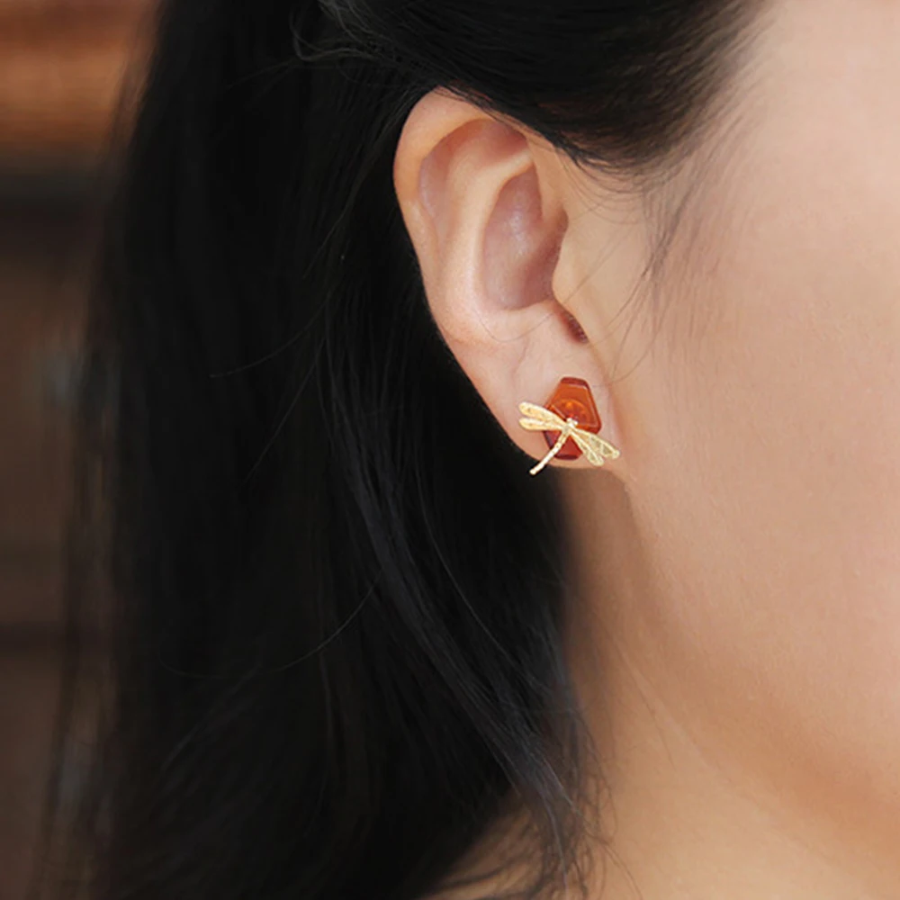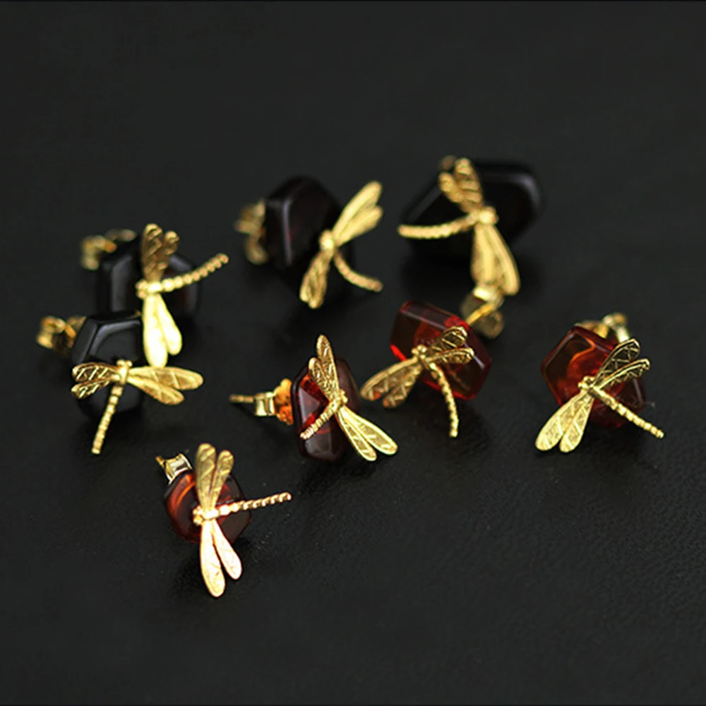 Real 925 Sterling Silver Flower Earrings Fine Jewelry Handmade natural Amber Earrings For Women AED30009