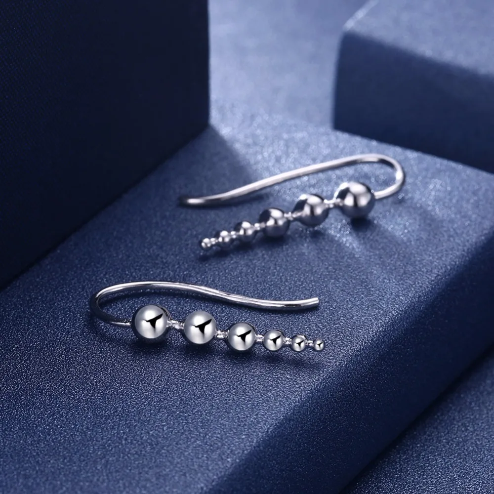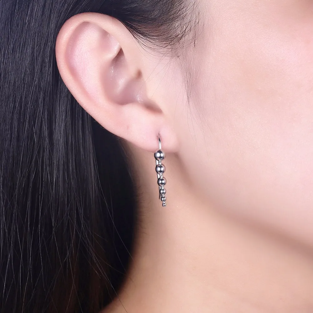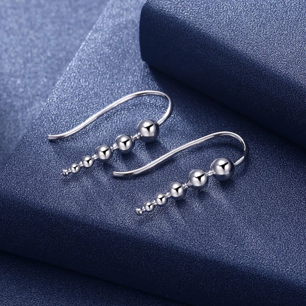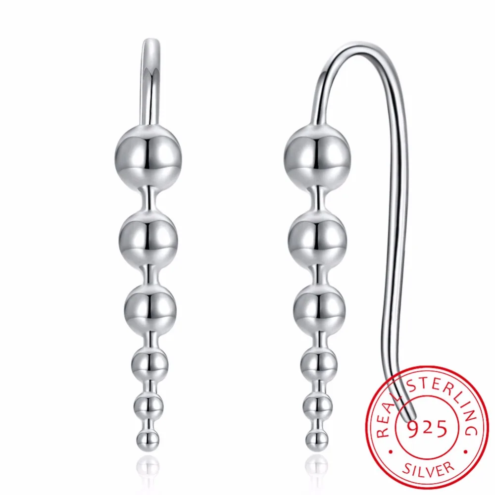 100% Authentic 925 Sterling Silver Round Bean Bead ball Drop Earrings, Clear CZ Sterling Silver Jewelry Brincos de Prata