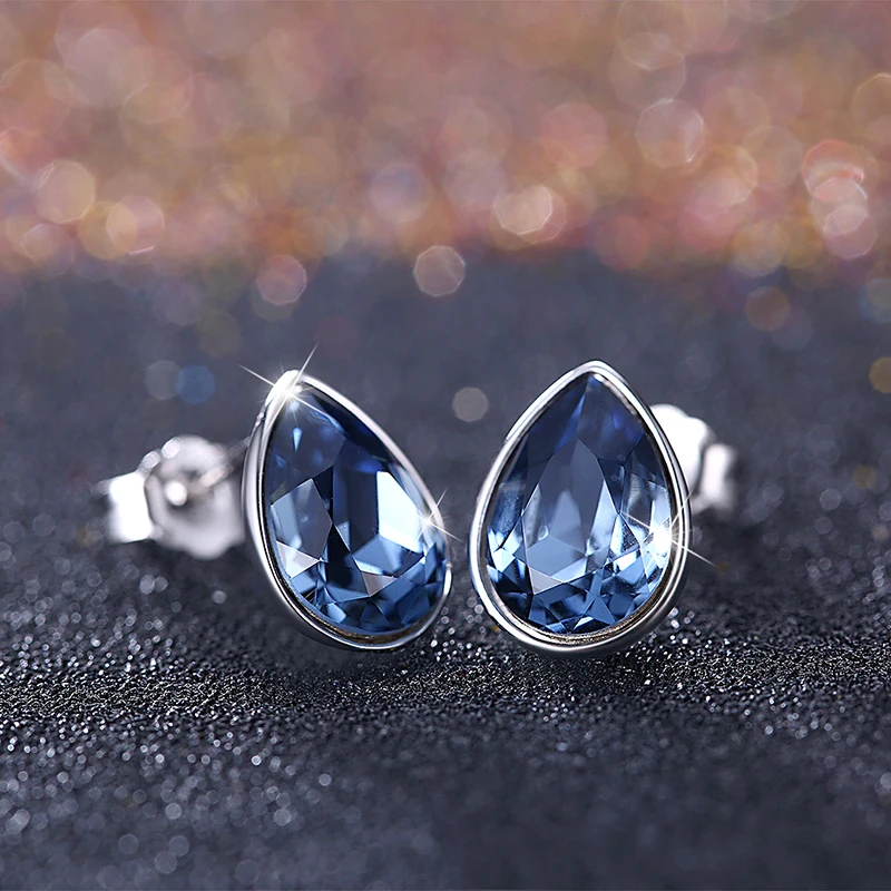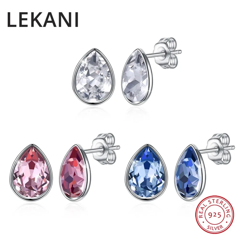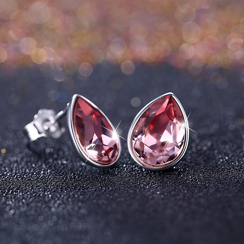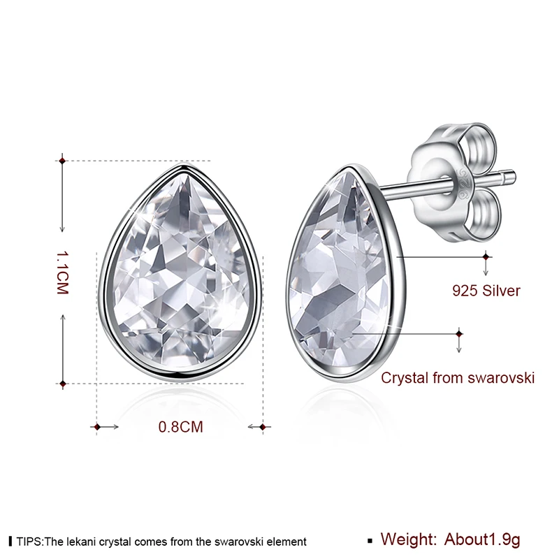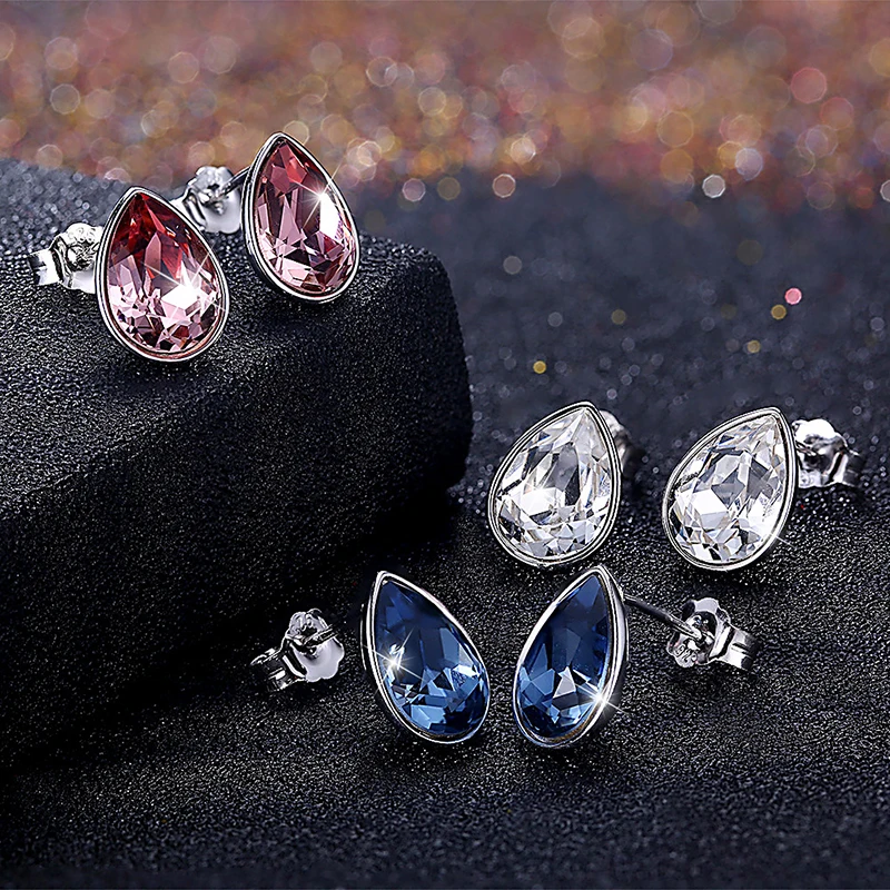 Crystals From SWAROVSKI Waterdrop Stud Earrings Simple Fashion Piercing S925 Silver Fine Jewelry For Women Joyas