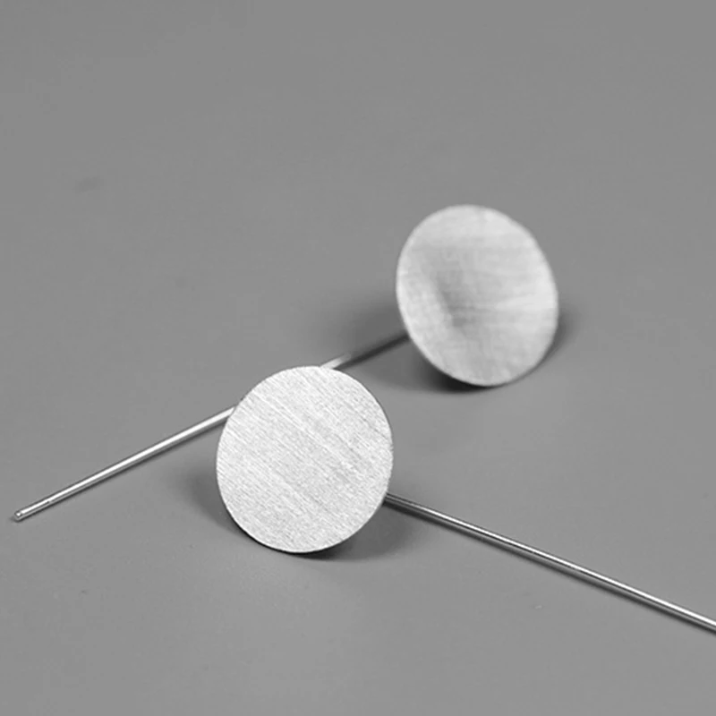 Real 925 Sterling Silver Handmade Creative Designer Fine Jewelry Minima Style Round Dangle Earrings for Women