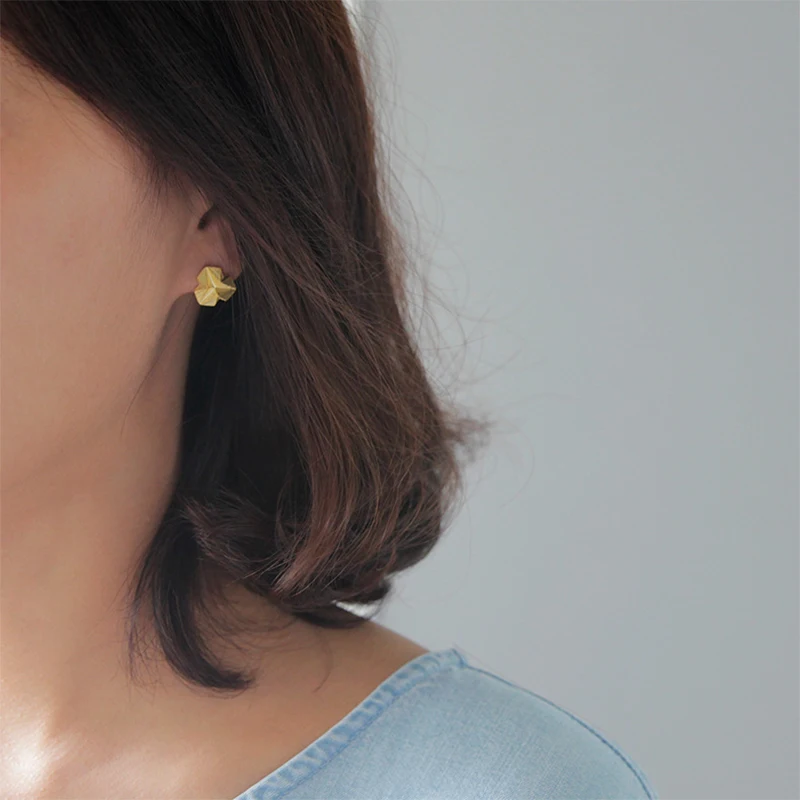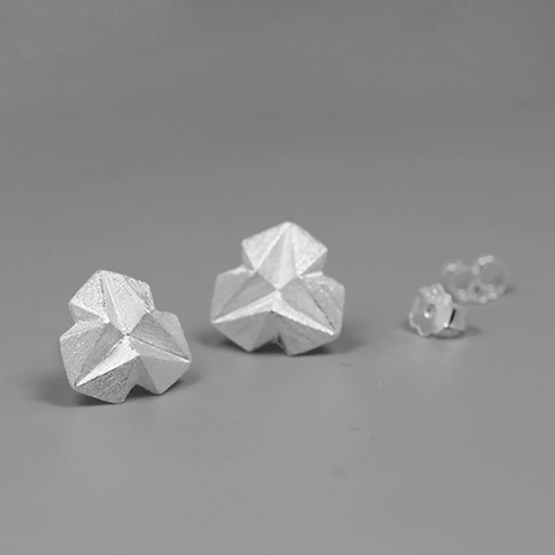 Real 925 Sterling Silver Handmade Fine Jewelry Minima Style Stereoscopic Triangle Stud Earrings for Women Brincos