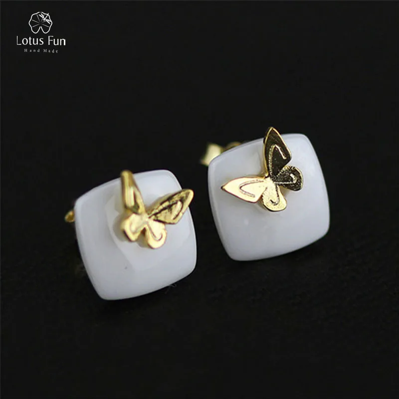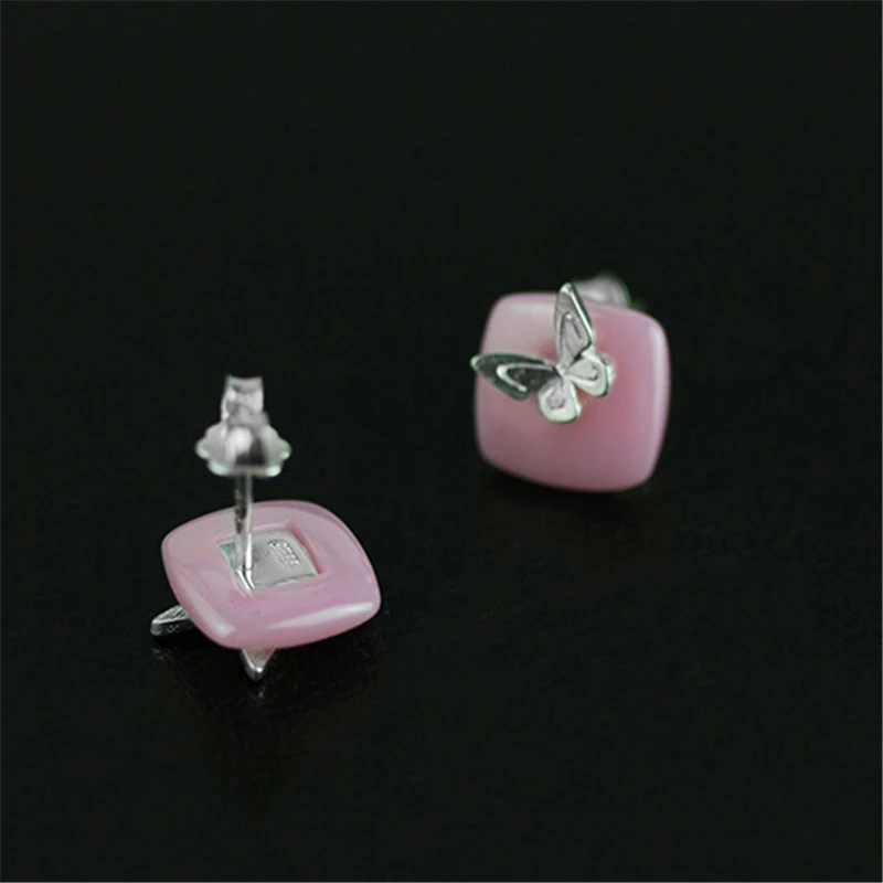 Brand Real 925 Sterling Silver Stud Earrings for Women Ceramics Butterfly Earings Fine Jewelry Valentine's D Gift