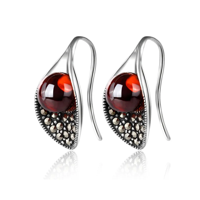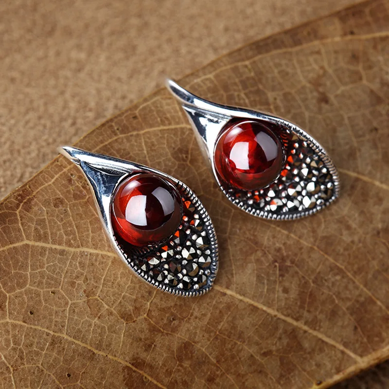 925 sterling silver natural stone earrings natural garnet red agate red corundum Calla lily drop earrings for women