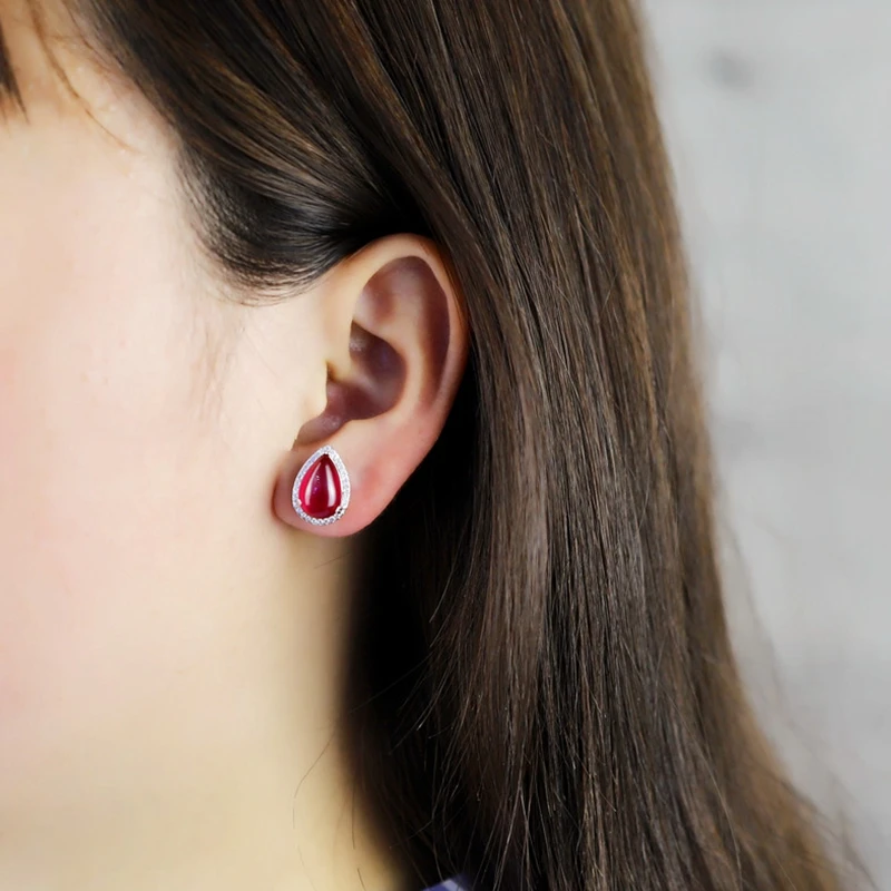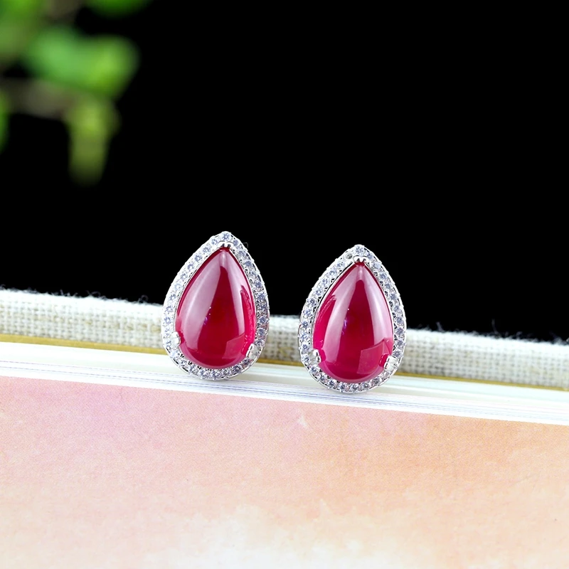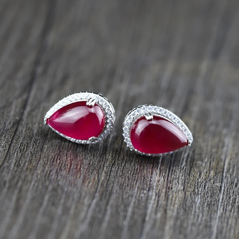 925 sterling silver Red corundum earrings red handmade openwork design natural red jade stud earring for women jewelry