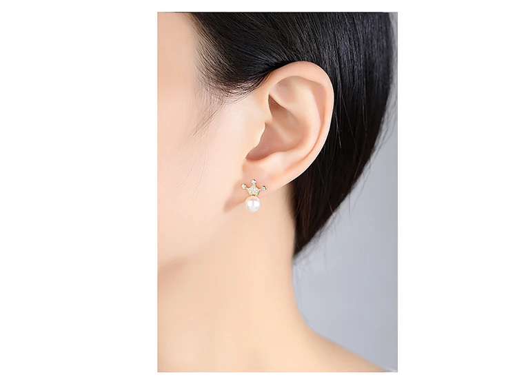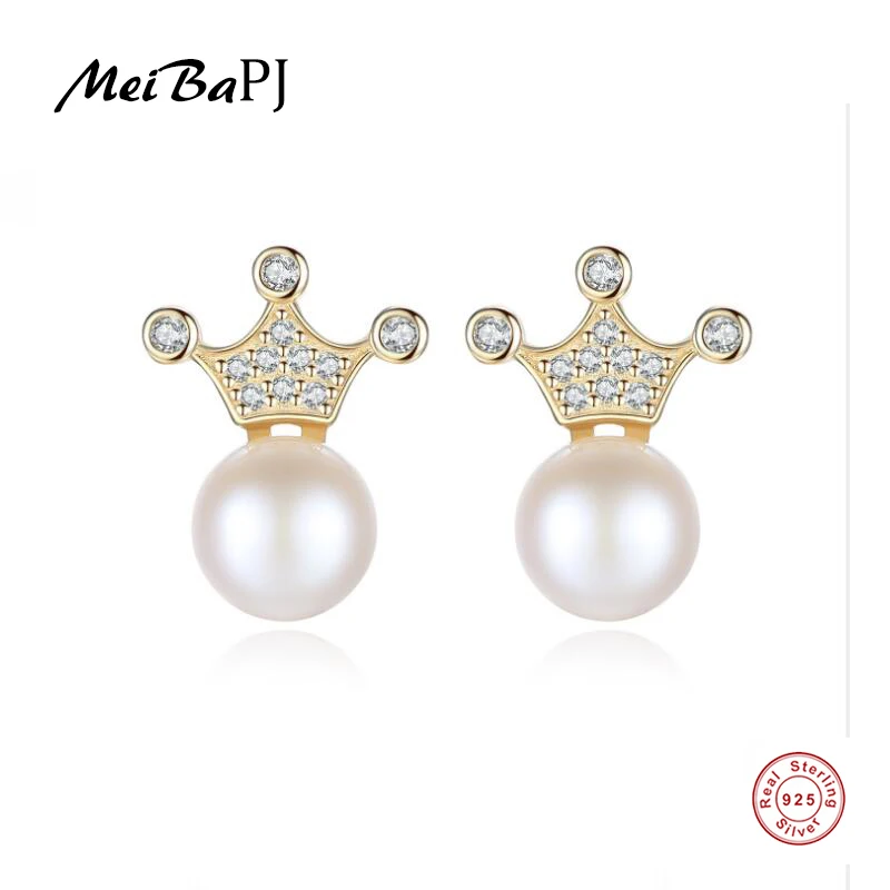 [MeiBaPJ]Natural Pearl Stud Earrings Real 925 Sterling Silver Fashion Crown Earrings for Women