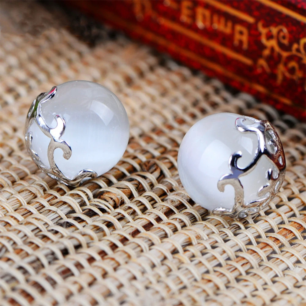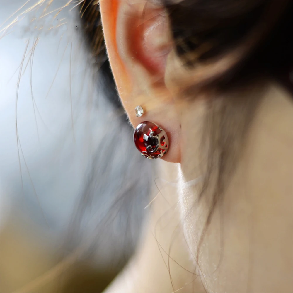 Natural Garnet /Cat's Eye Earrings Solid 925 Sterling Silver Stud Earrings for Women's Wedding Party Fine Jewelry