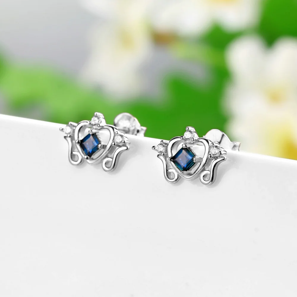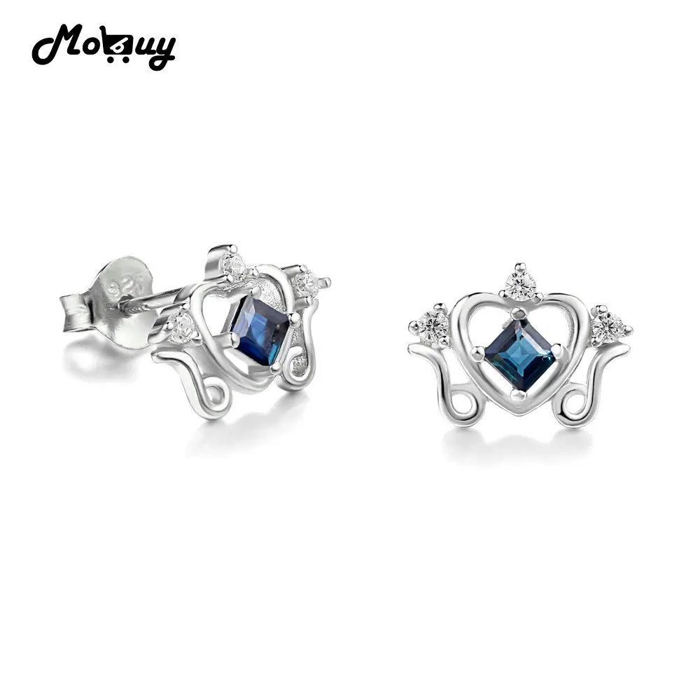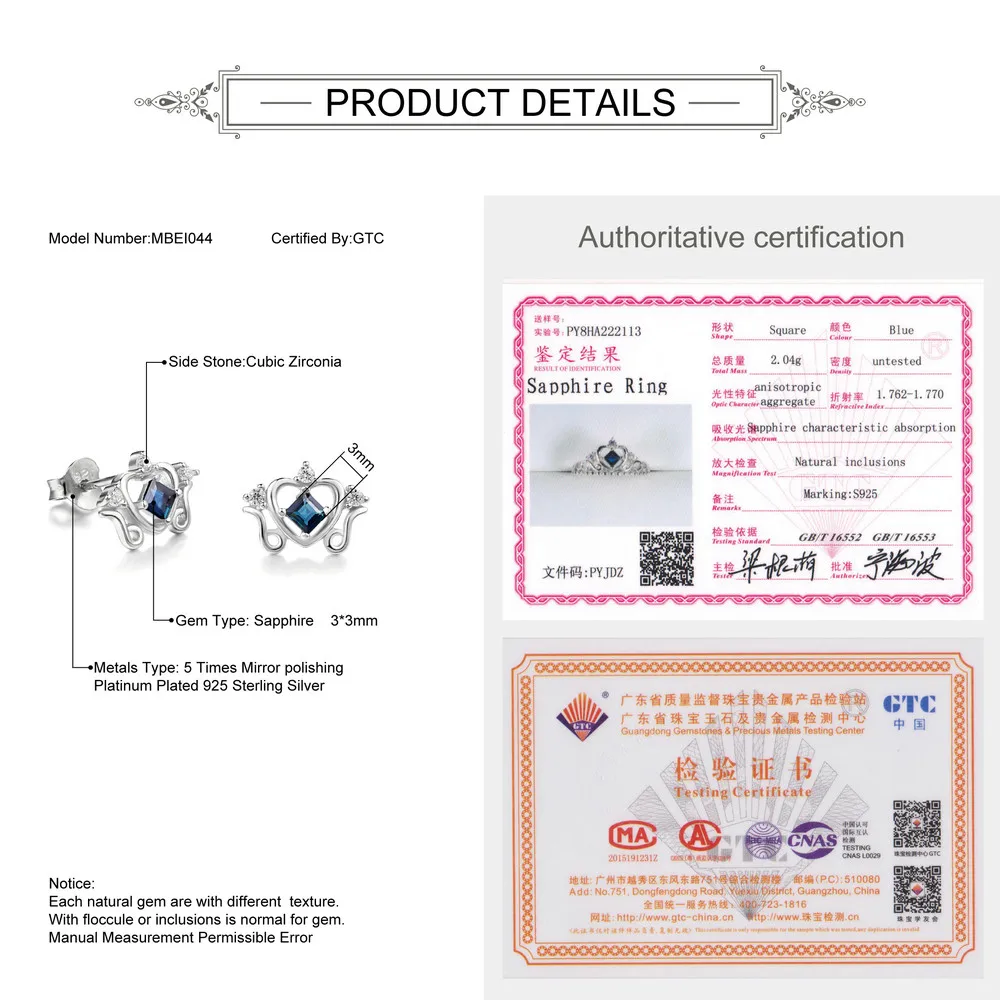 MBEI044 Blue Square Sapphire Princess Stud Earrings 925 Sterling Silver Natural Gemstone White Gold Fine Jewelry Gift