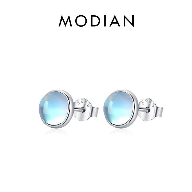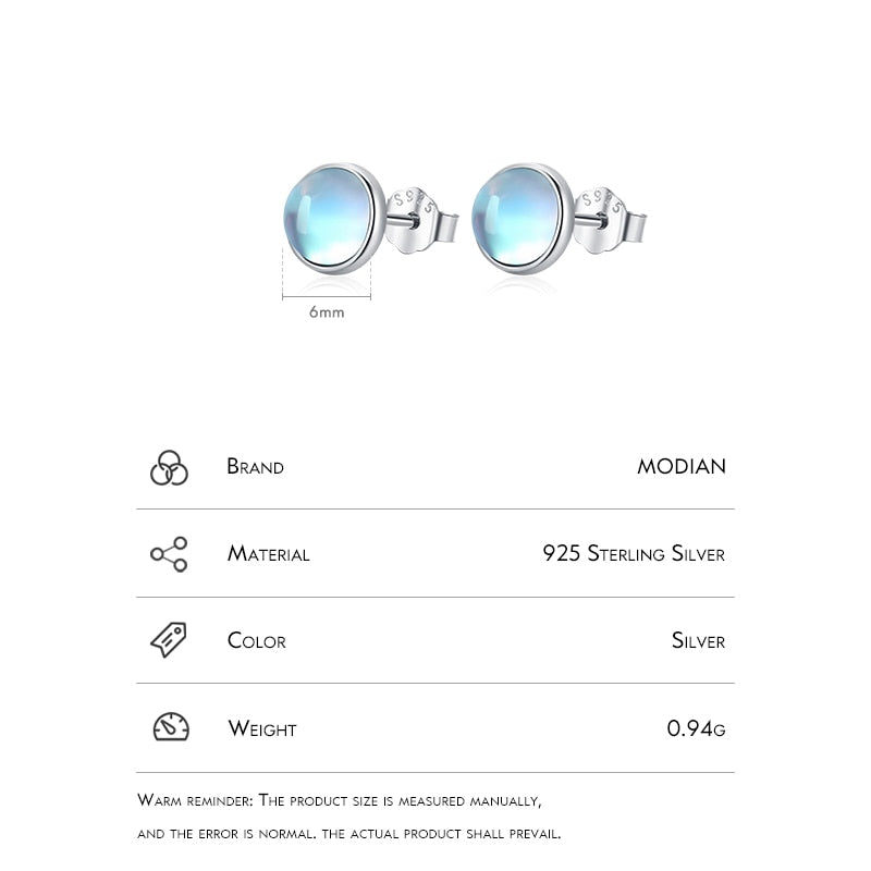 Modian 925 Sterling Silver Round Exquisite Moonstone 4 5 6 MM Stud Earrings Platinum Plated Charm Ear Studs For Women Jewelry