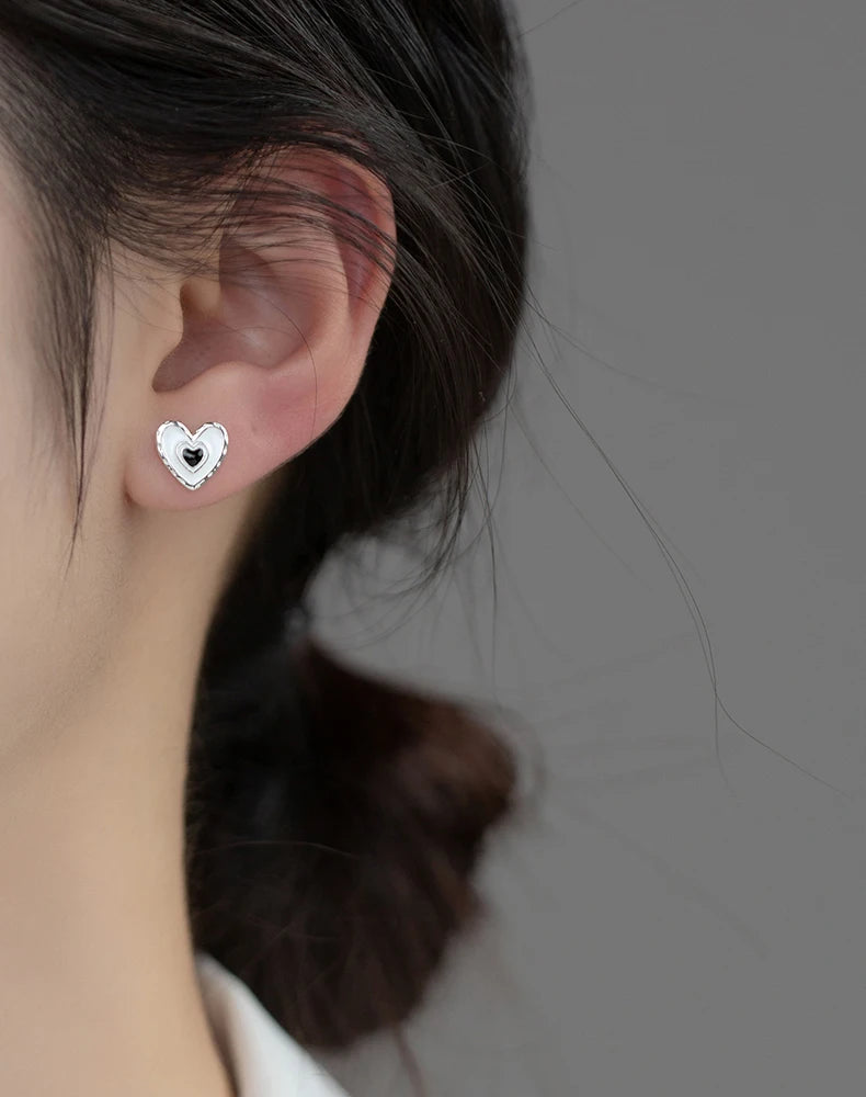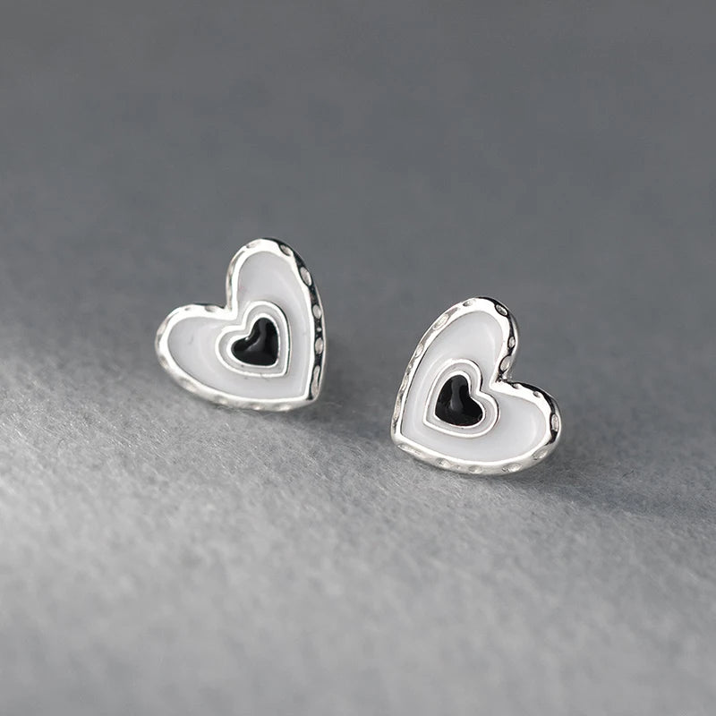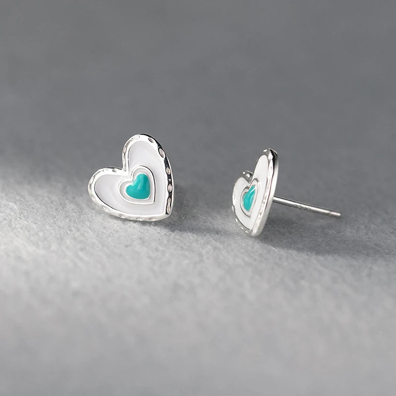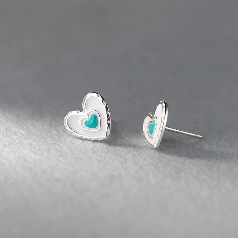 MODIAN Genuine 925 Sterling Silver Cute Layering Heart Stud Earrings For Women 4 Color Delicate Enamel Ear Studs Fine Jewelry