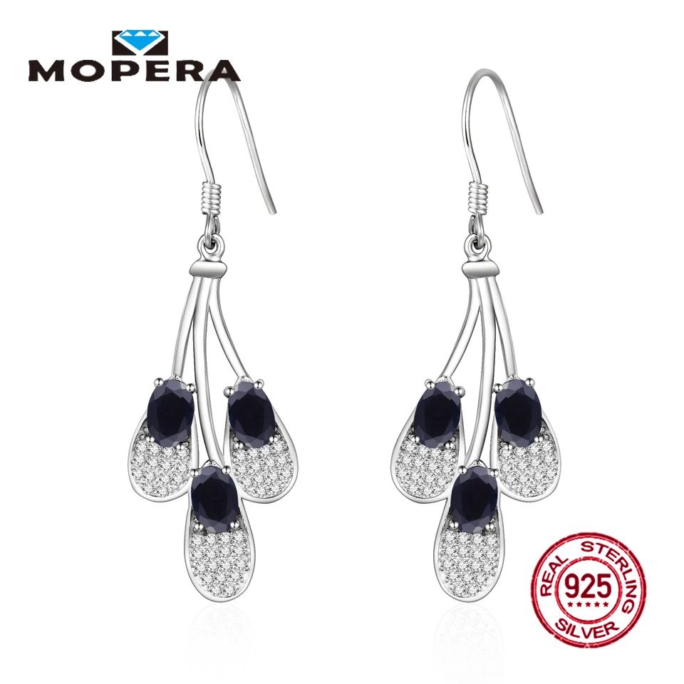 Silver Earrings Natural Black Sapphire 2.52ct Ethnic Water Drop Insect Earring For Women 925 Sterling Silver Fine Jewelry