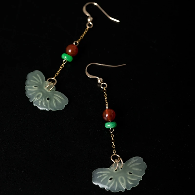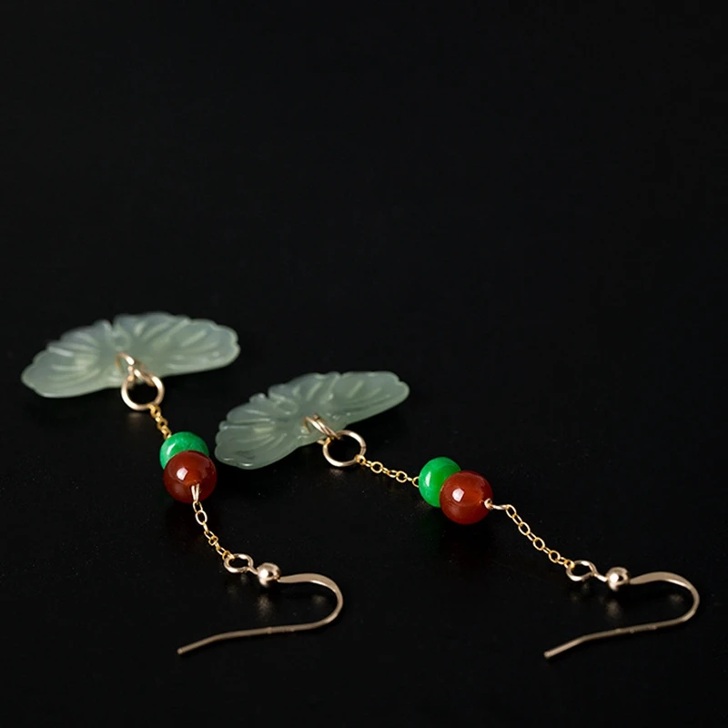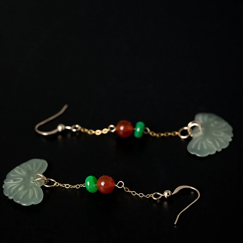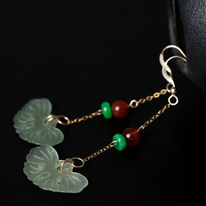 Natural hetian jade Emerald Garnet 14K gold earrings ethnic new design elegant noble drop earrings for women charms jewelry gift
