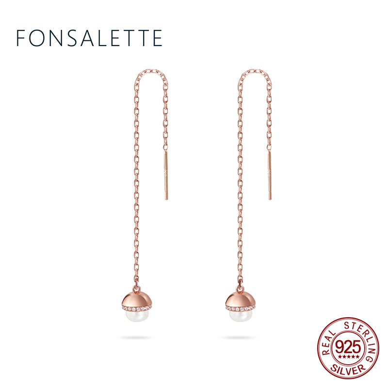New Fashion Earrings Pearl CZ Long Chain Ear Rose Gold Threader Drop Dangle Earrings Women Jewelry Christmas Giftzk40