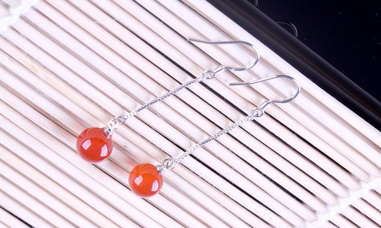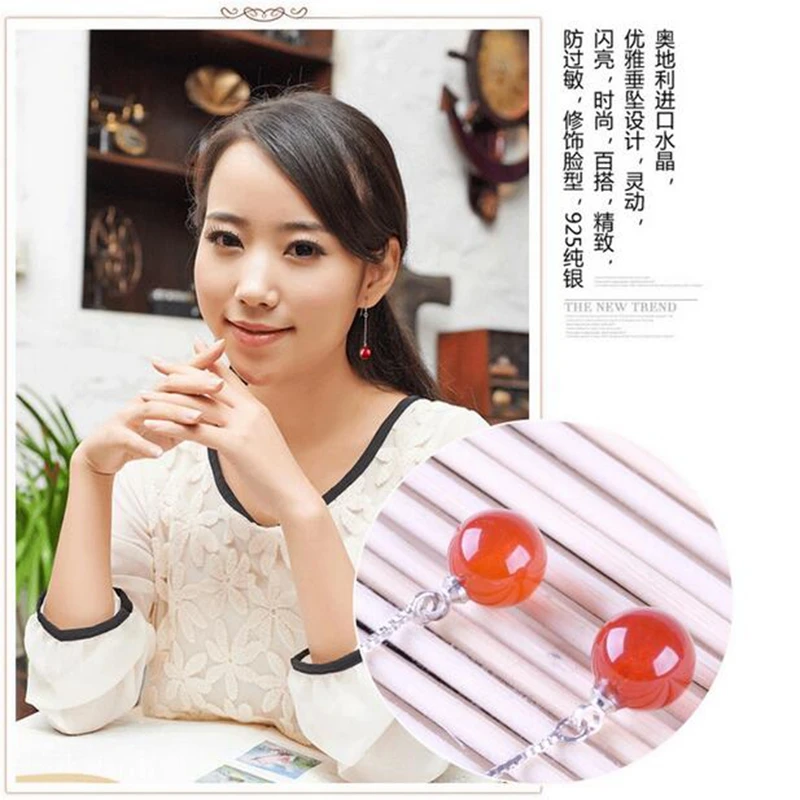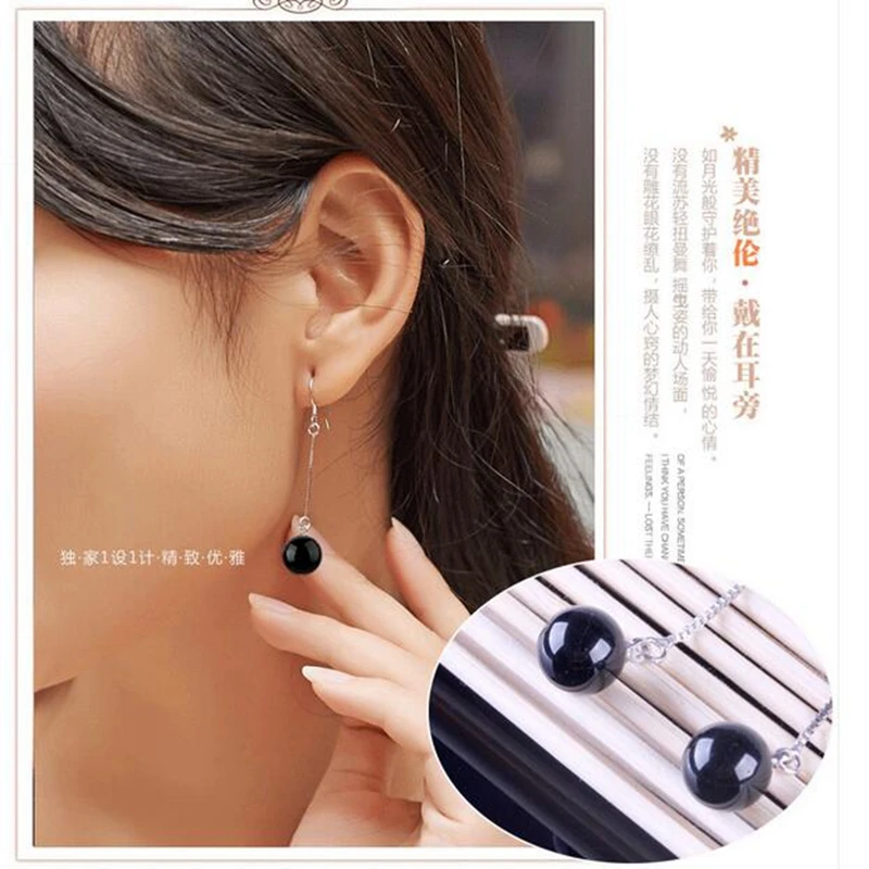 Wholesale Jewelry fashion joker star for Woman gift Agate 8mm 925 Sterling Silver long Tassel line drop Earrings YS199
