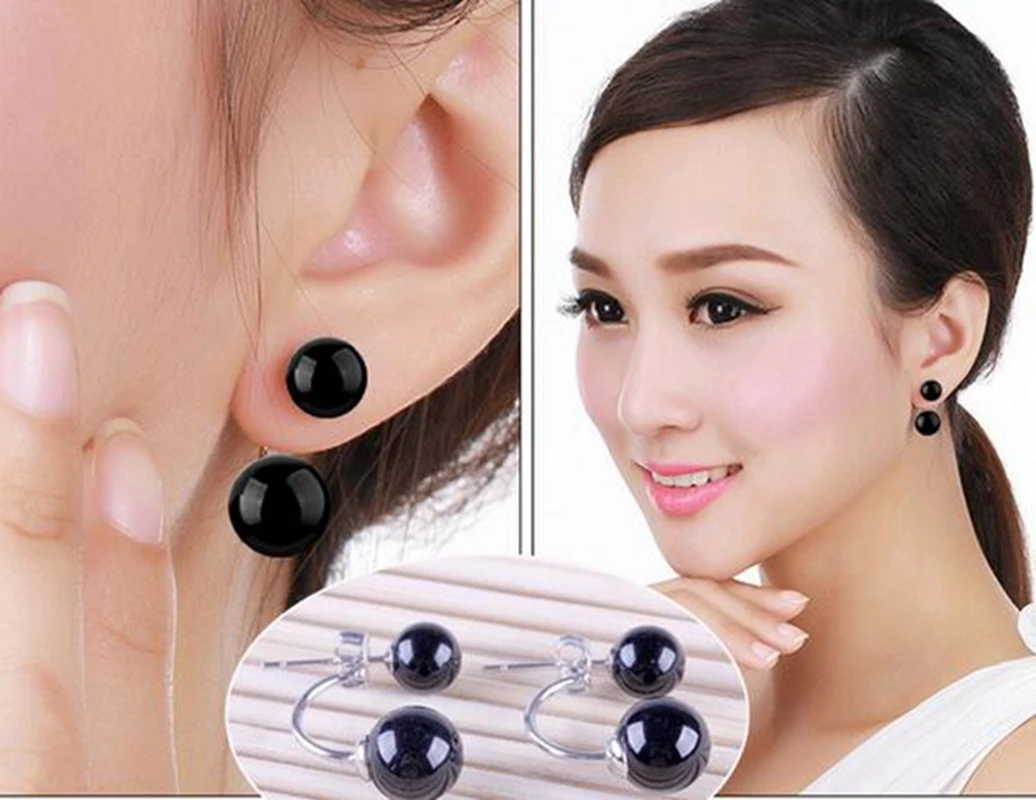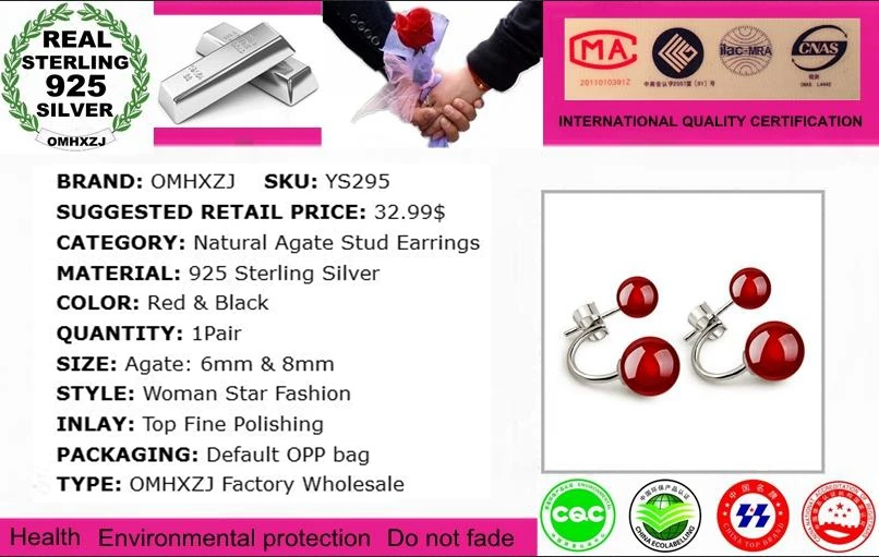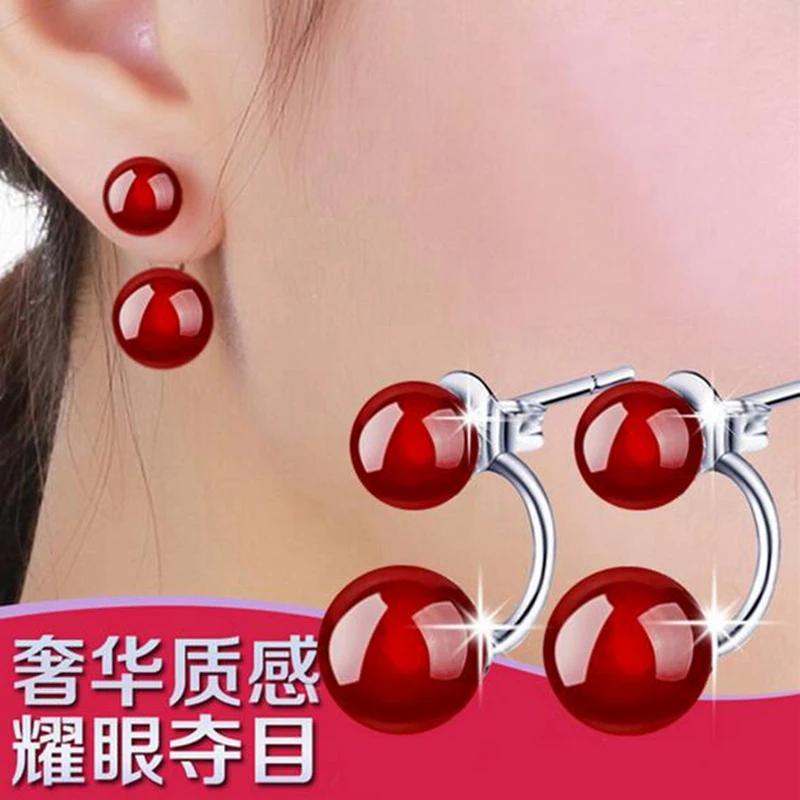 Wholesale Jewelry Simple Sweet Fashion for Woman Gift 8mm Red Black Natural Agate 925 Sterling Silver Stud Earrings YS295