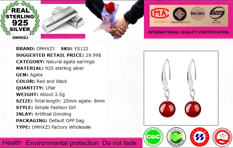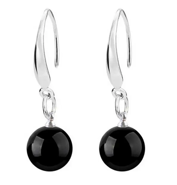 Wholesale star Fashion woman jewelry Black red round ball Drops pendant agate 925 sterling silver Earrings YS122