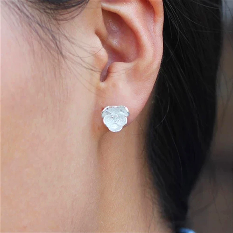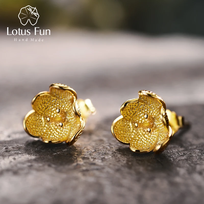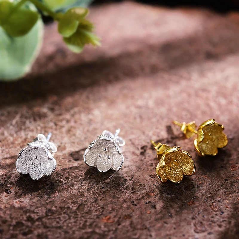 Real 925 Sterling Silver Natural Creative Handmade Fine Jewelry Vintage 3D Flower Stud Earrings for Women Brincos