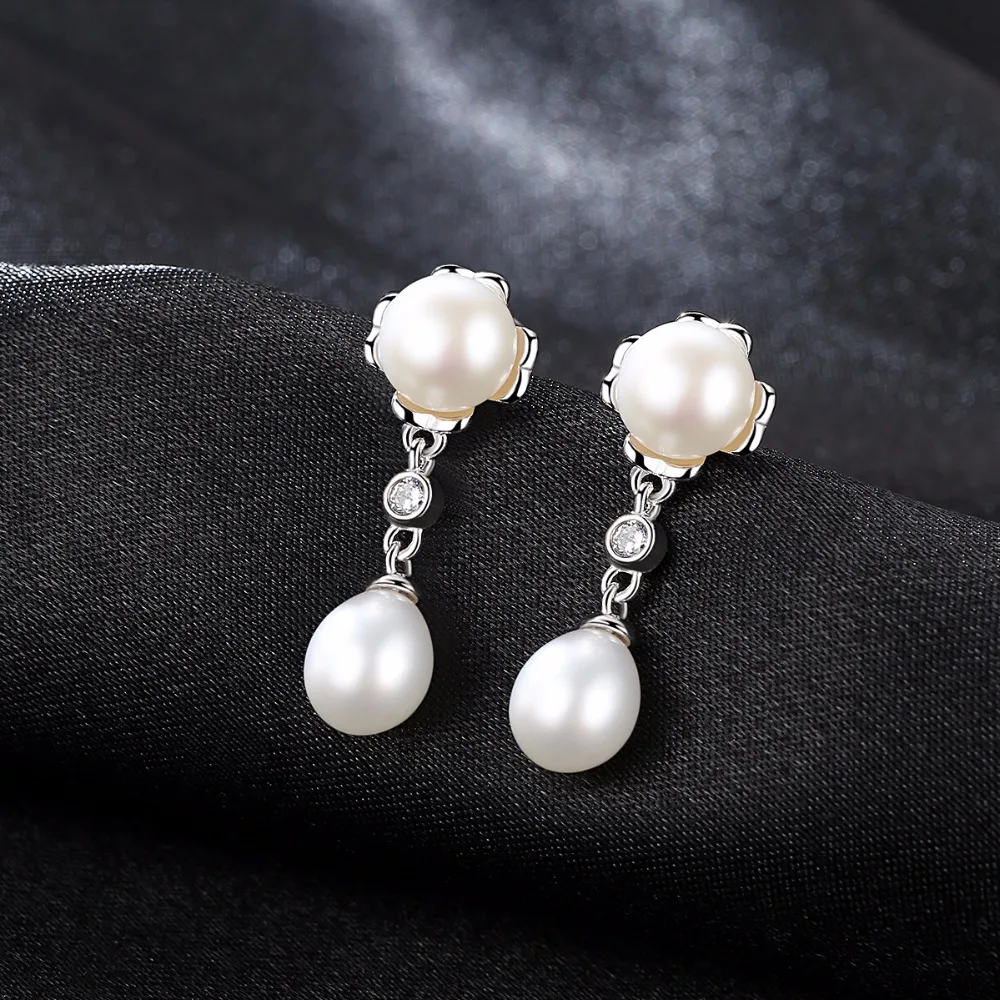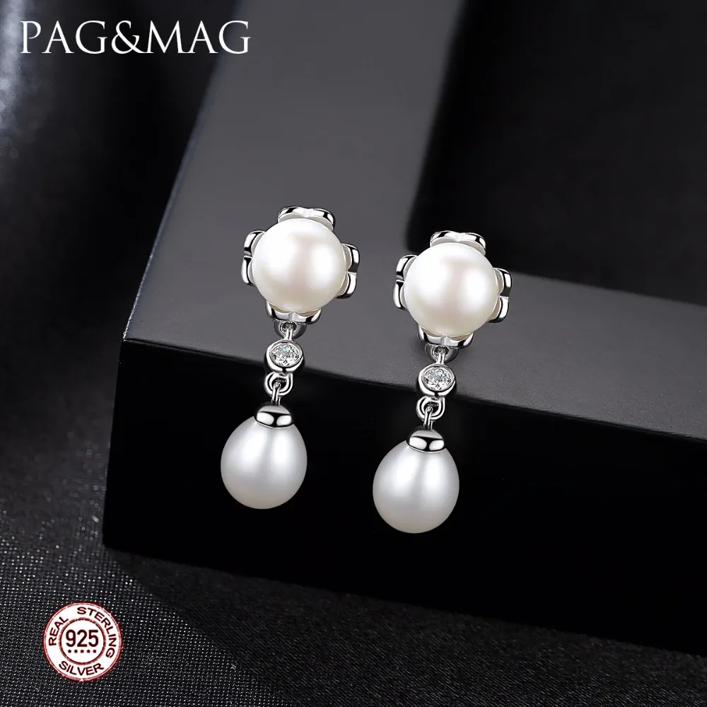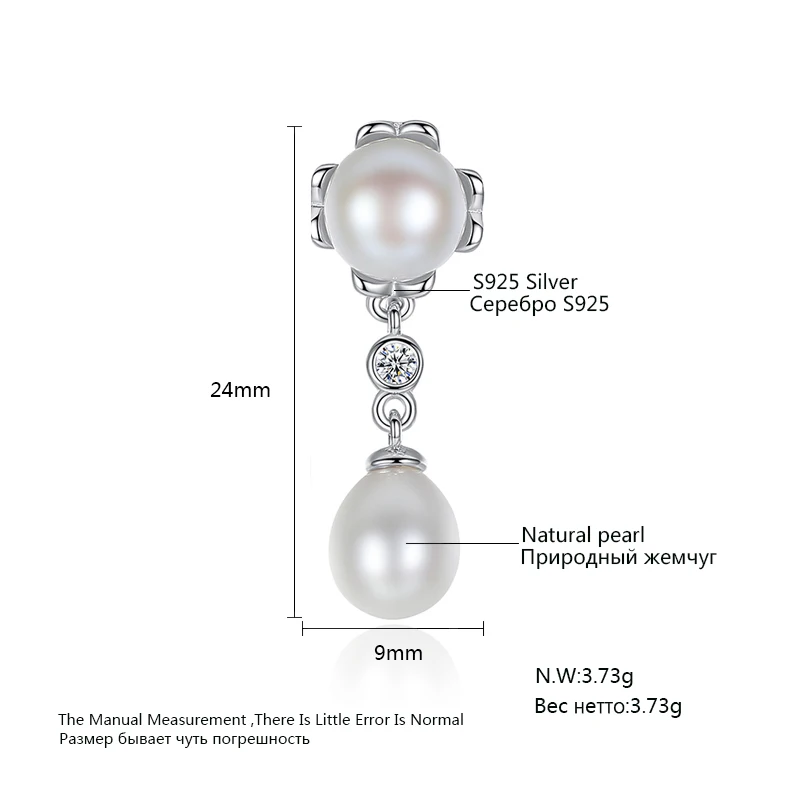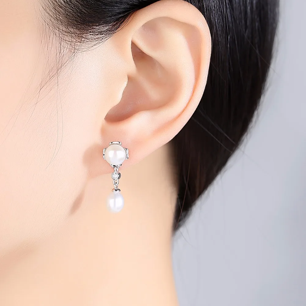 Brand 100% Genuine Double Pearls Long Stud Earrings Romantic Jewelry For Women Engagement Gifts 925 Sterling Silver