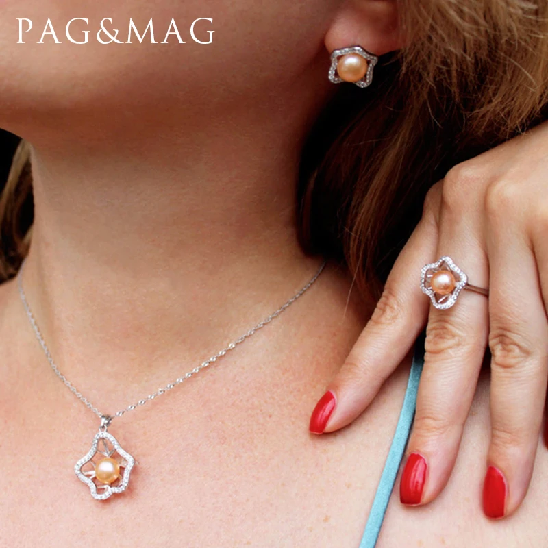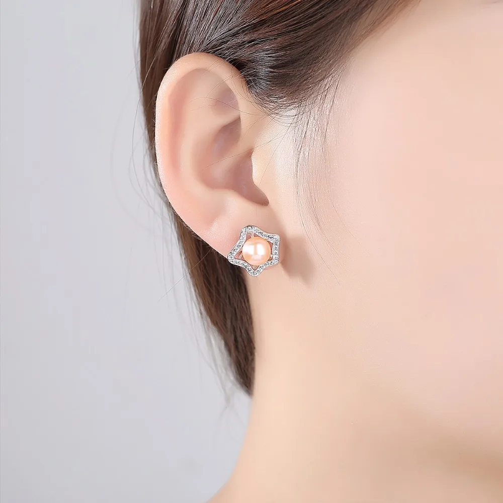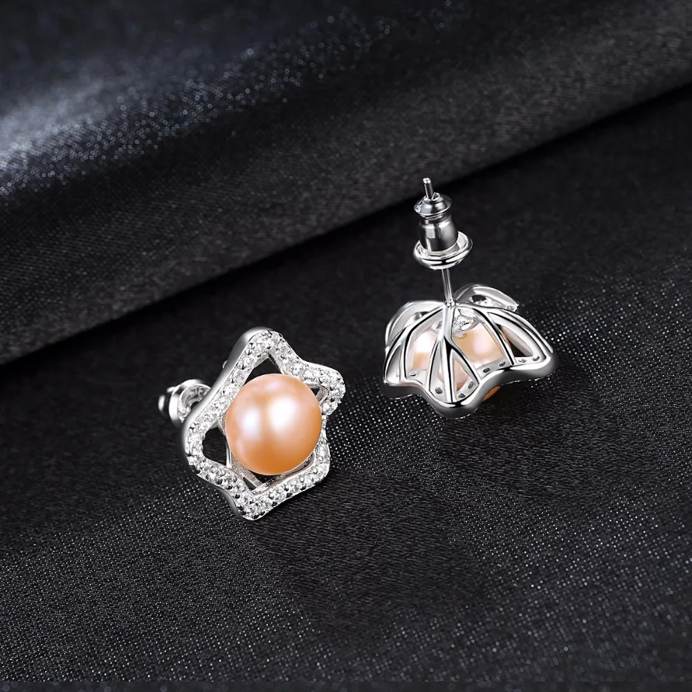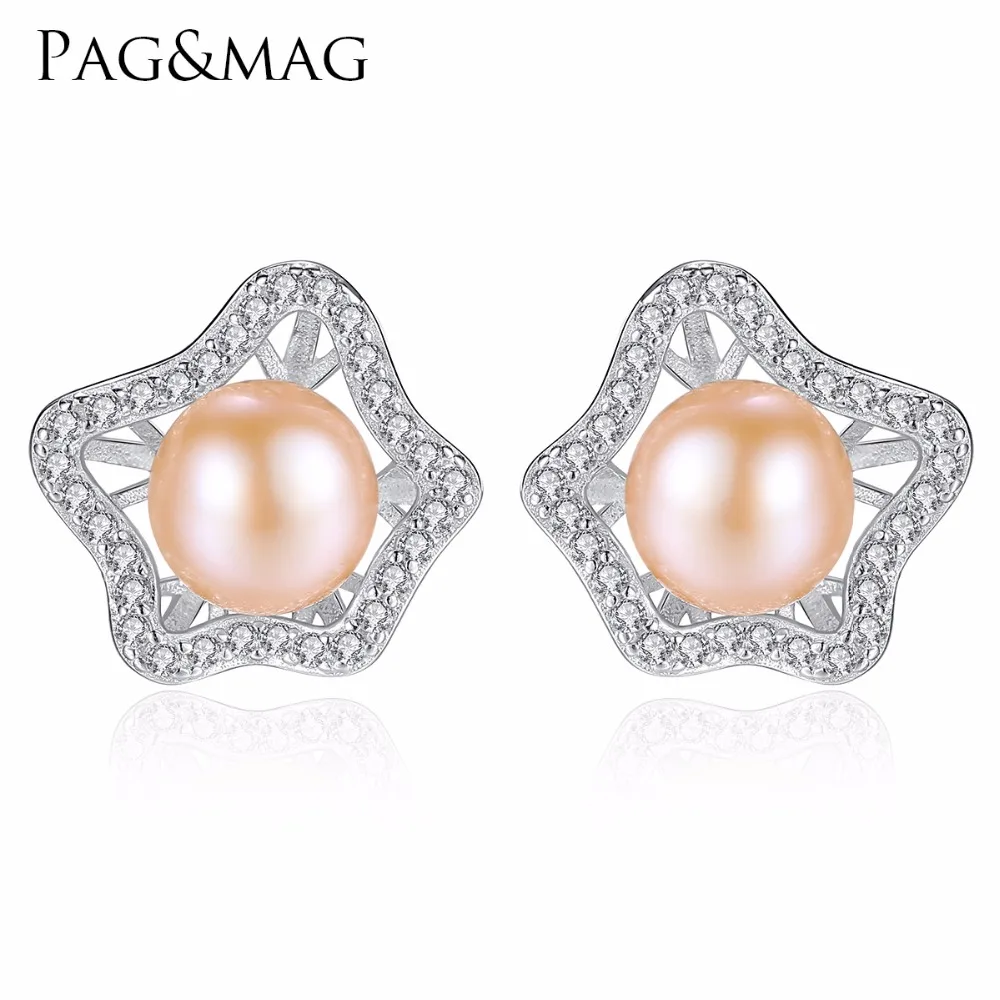 Brand Romantique Flower Shape 925-Sterling-Silver Natural Fresh Water Pearl Earrings Fine Jewelry For Women Gifts