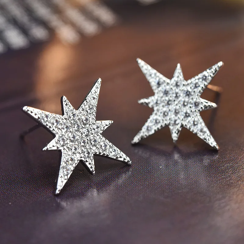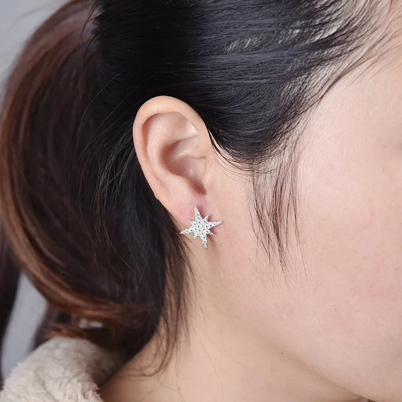 Pretty Star Design Woman Earrings 925 Sterling Silver Ear Pin Ladies Brinco Stud Earrings for Lovers Daughter Gift