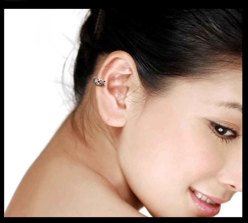 Pure 925 Sterling Silver Clover Earrings Fashion Punk Thai Silver Jewelry Clip Earring For Men Women Christmas Gift 1164