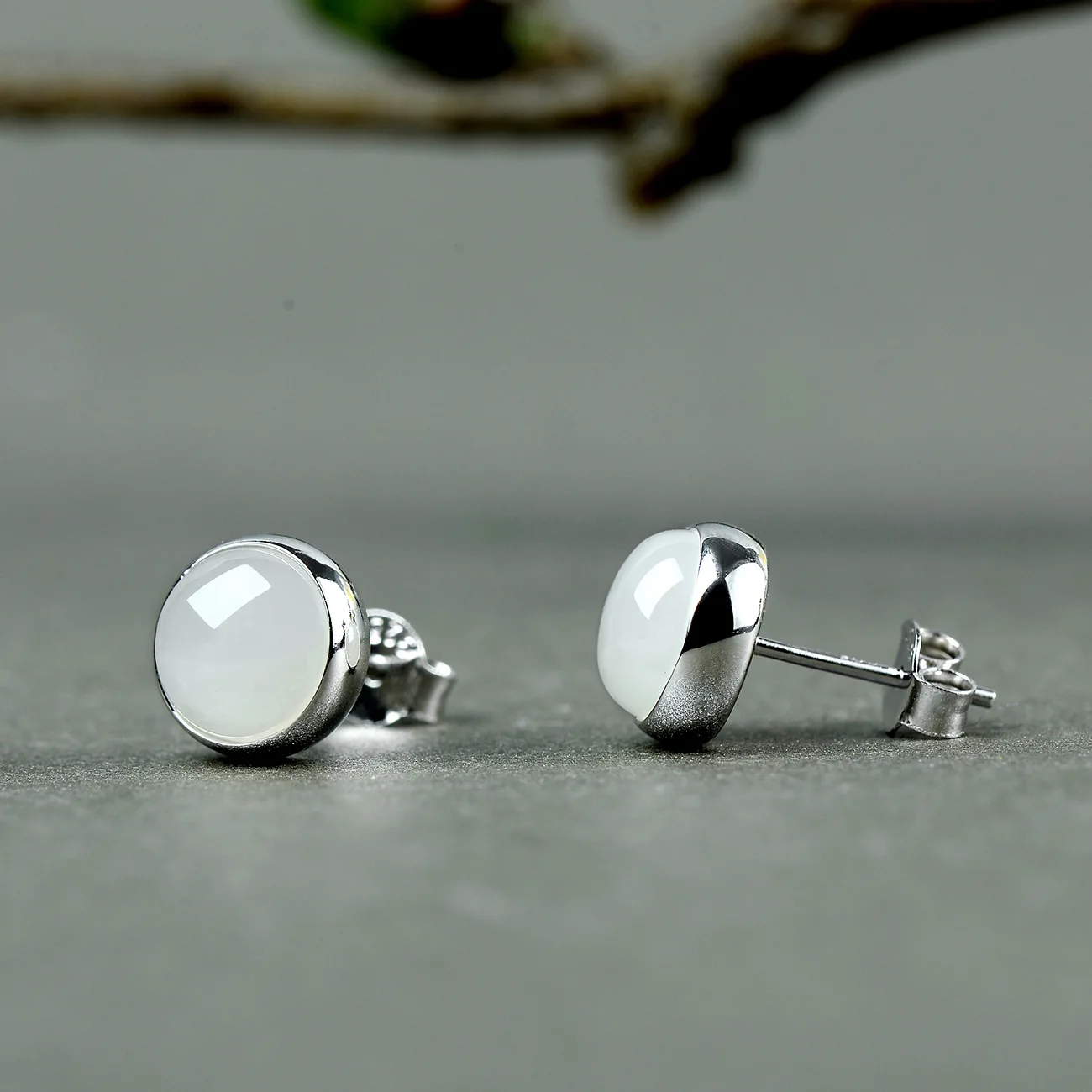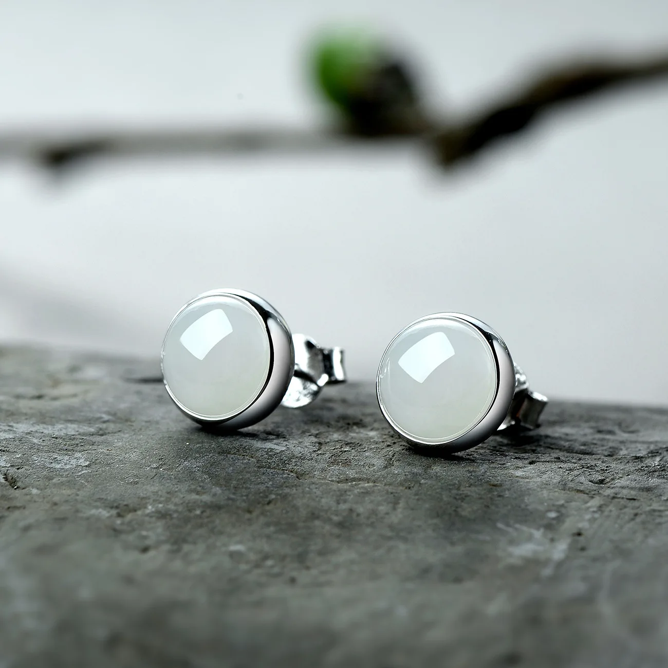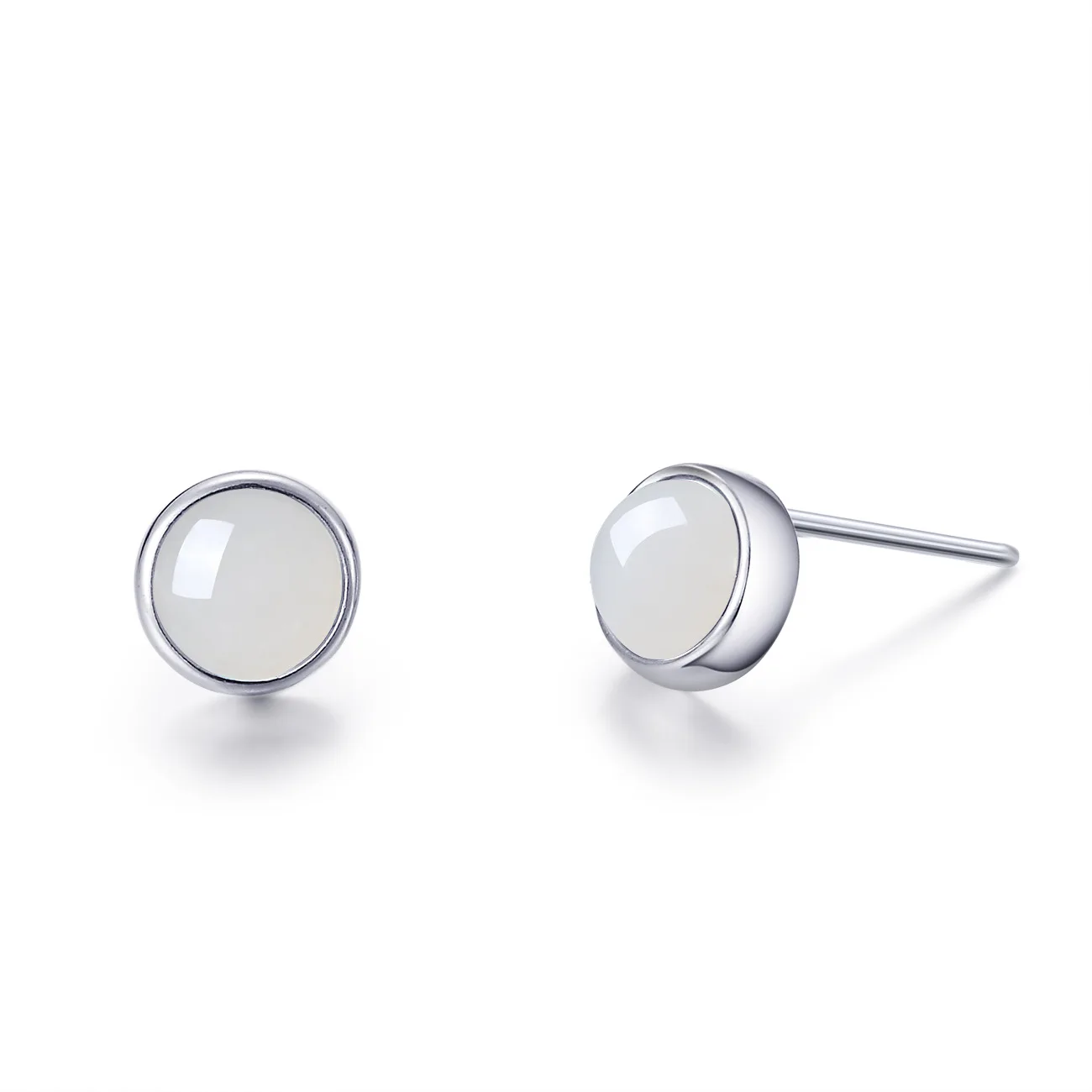 Real 925 Sterling Silver Natural Jade Stud Earrings Elegant Women Original Simple Design Personalized High Quality Jewelry