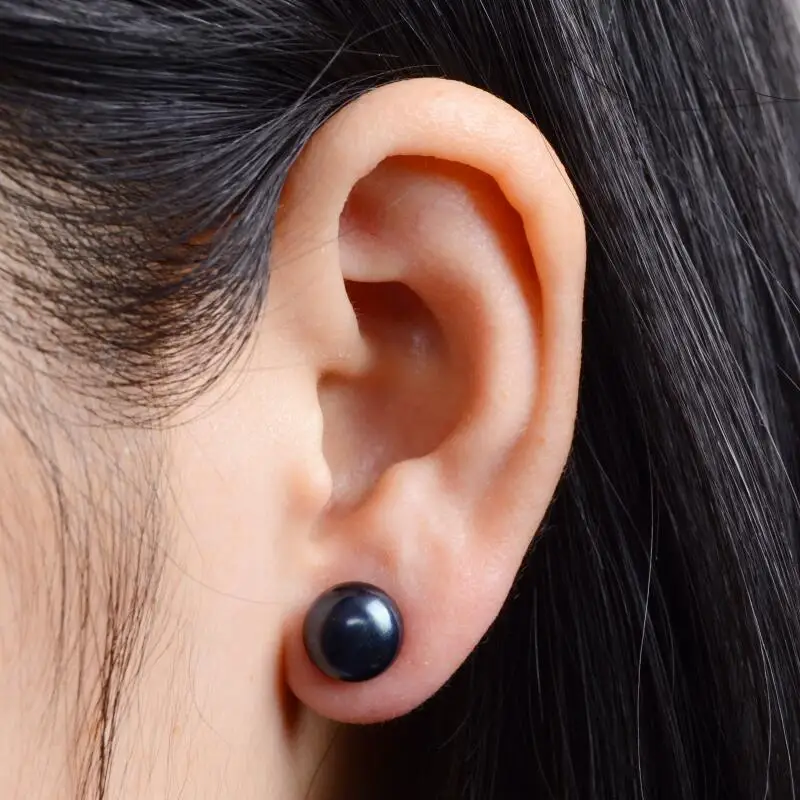 Real Black Pearl Stud Earrings, 925 sterling silver earrings For Women gift Jewelry