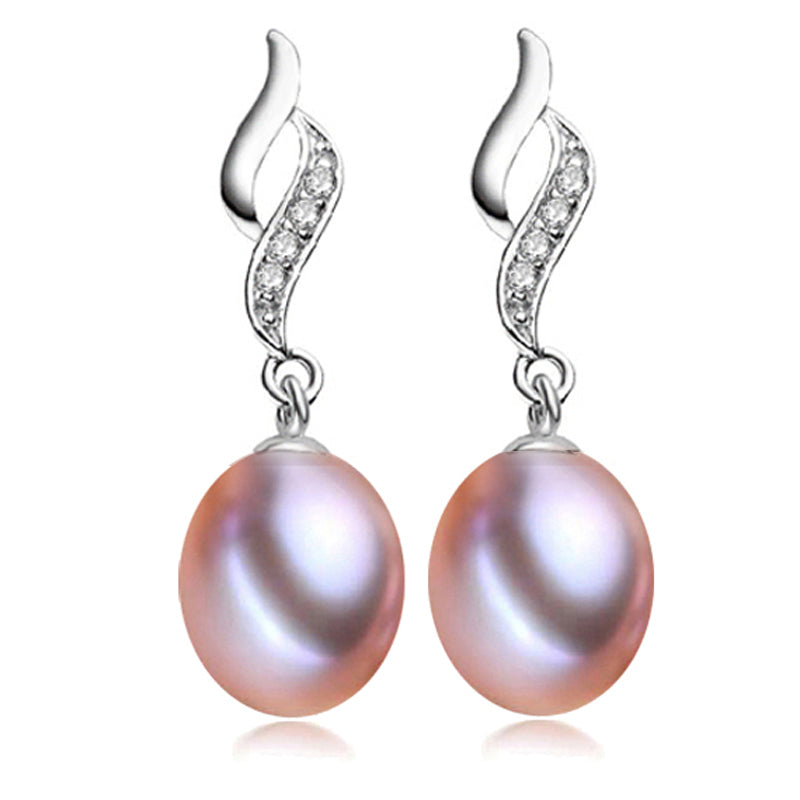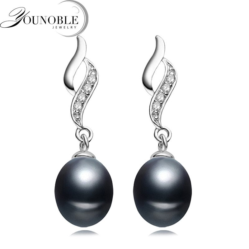 Real natural pearl earrings women,classic black bridal silver black pearl earring