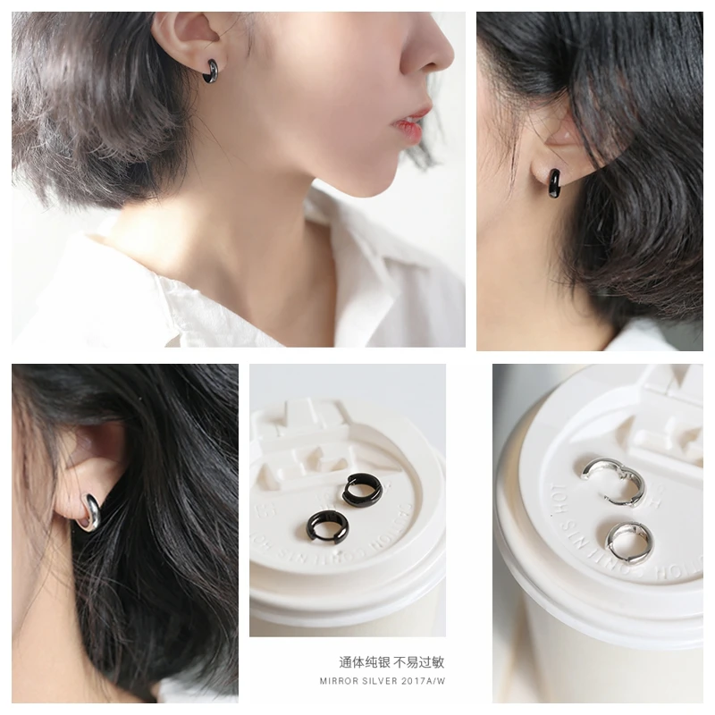 Sterling Silver Black&White Hoop Earrings High-end Fine Jewelry Korean Chic Style Clasp Earrings Unisex For Men&Women
