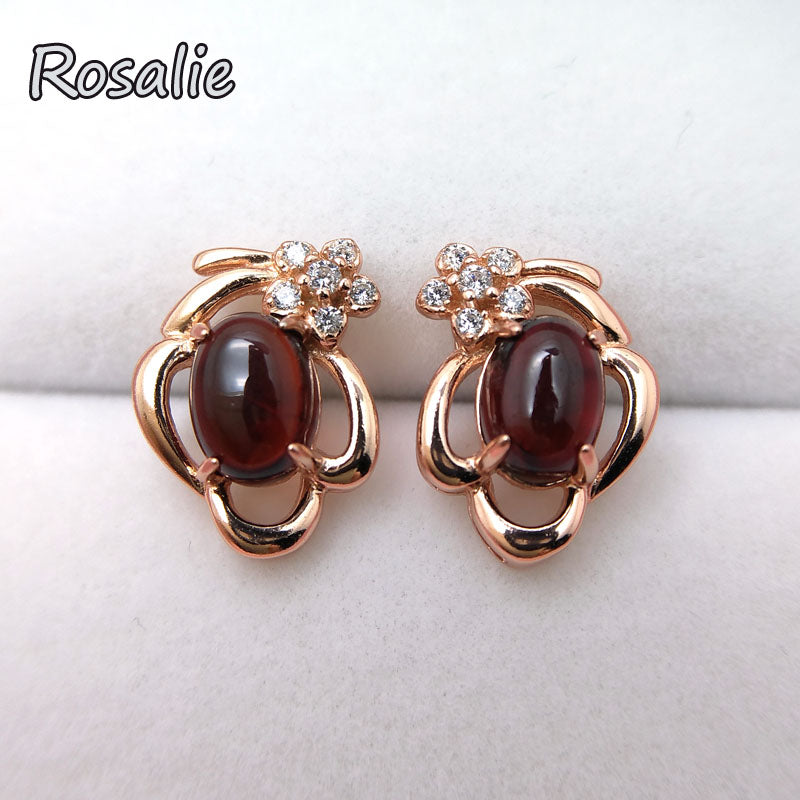 Rosalie,100% natural red mozambique garnet gemstone stud earring 925 sterling silver rose gold fine jewelry for girls nice gift