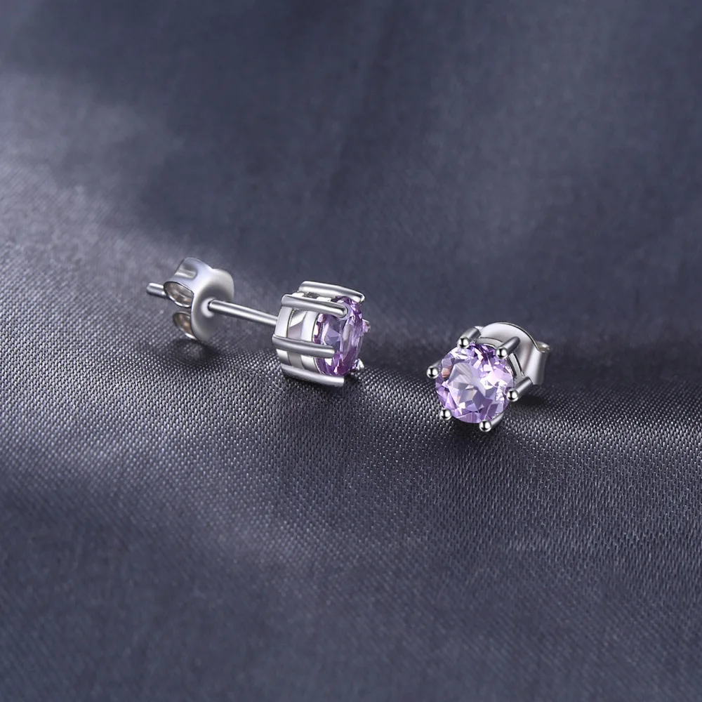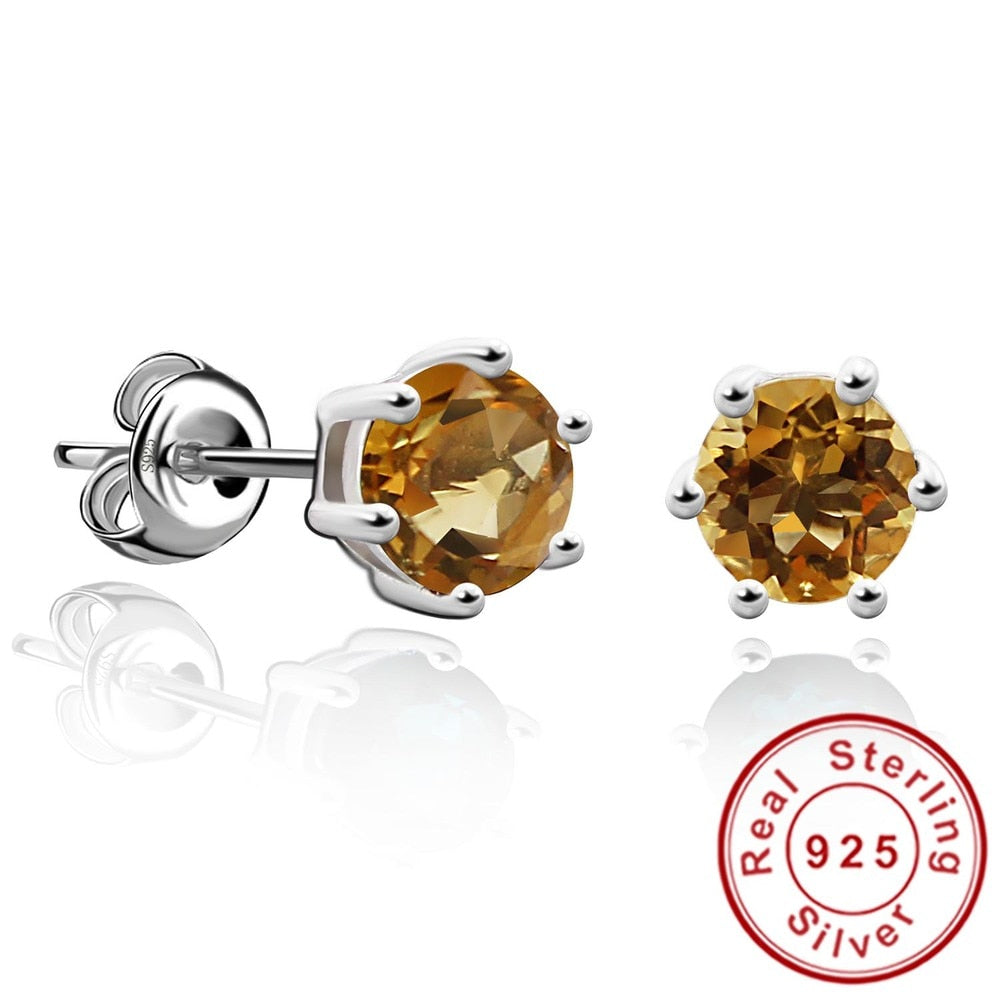 Round Gemstone Natural Amethyst Citrine Garnet Peridot Blue Topaz Stud Earrings 925 Sterling Silver Fine Jewelry Hot Selling
