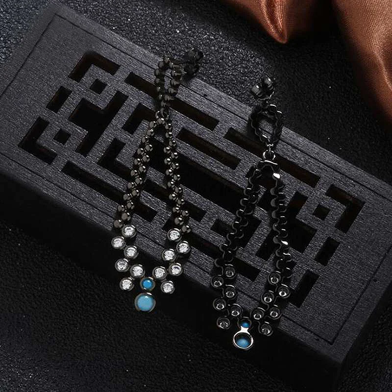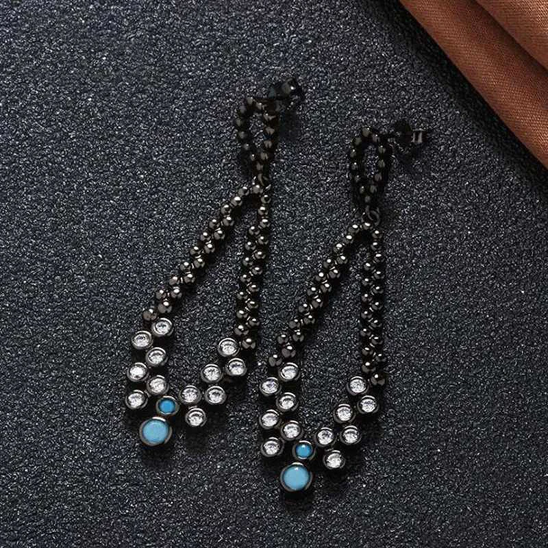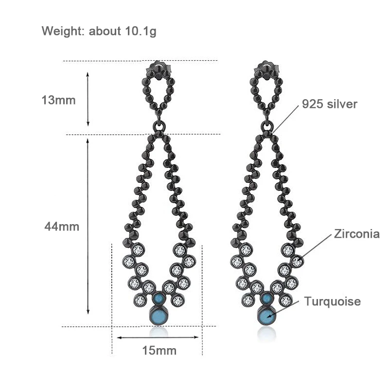 European Black 925 Sterling Silver Long Drop Earrings Turquoise Cubic Zirconia Bohemia Earrings for Women Female YEA159