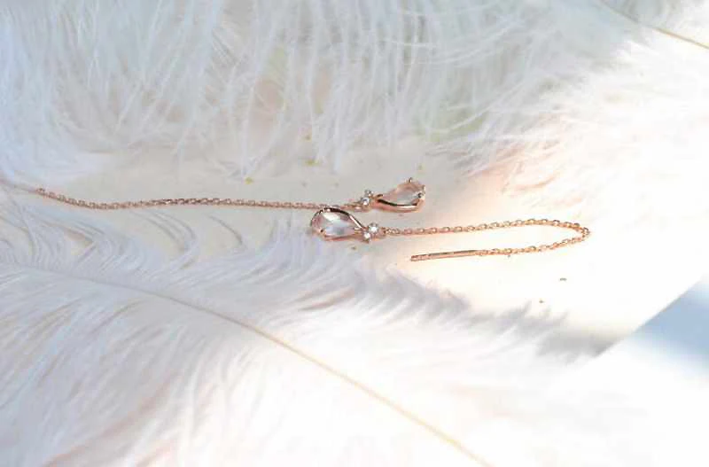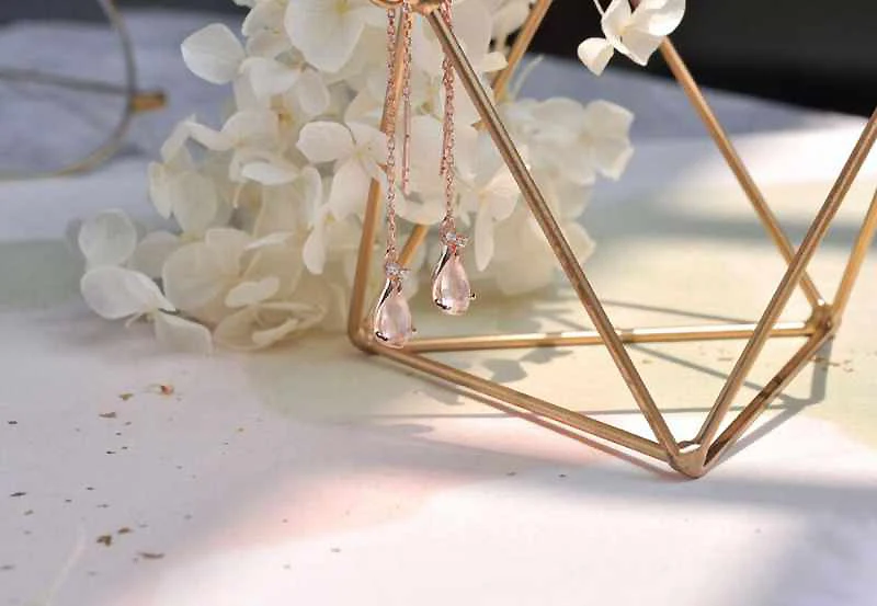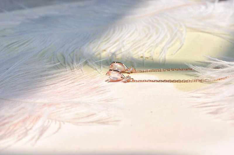 Pink Natural Rose Quartz Long 925 Sterling Silver Fashion Woman Earrings Line Rose Gold Drop Earrings with Stones YEA087