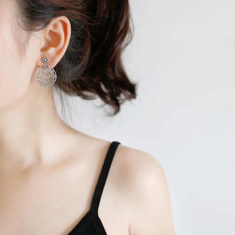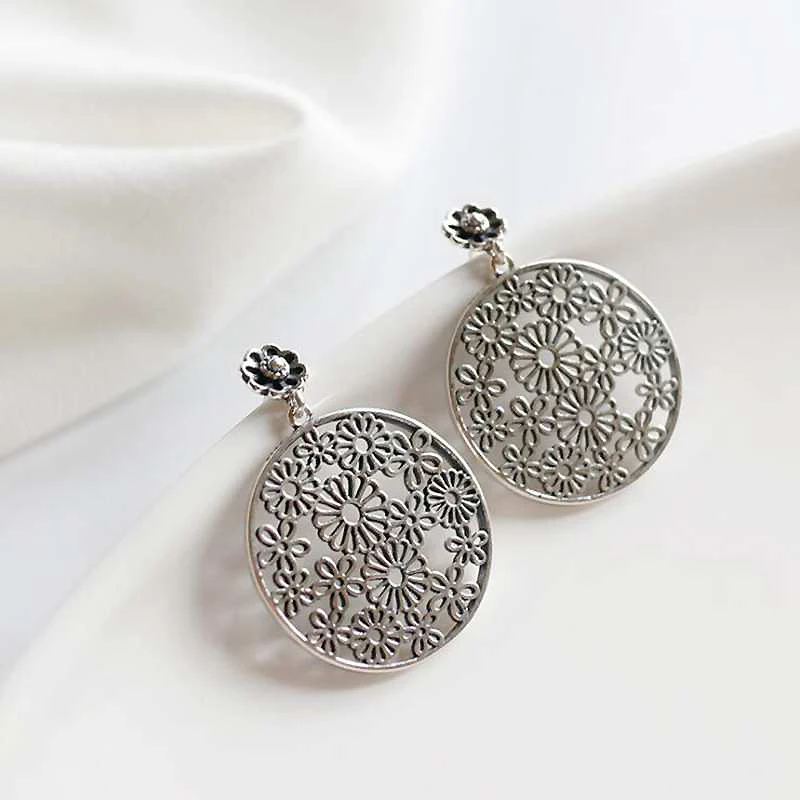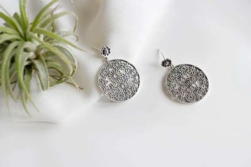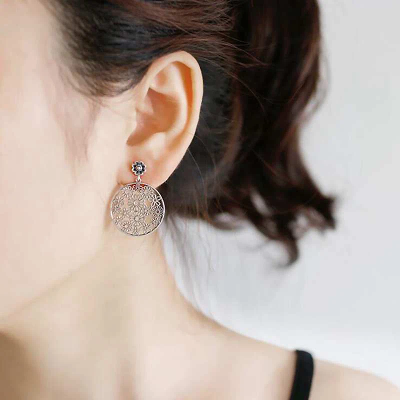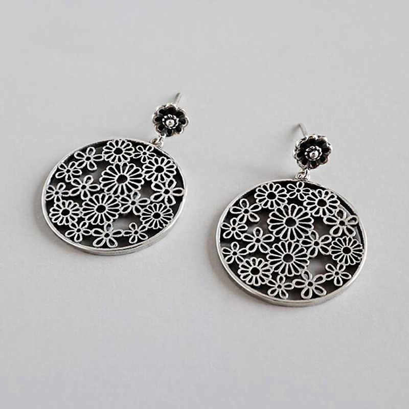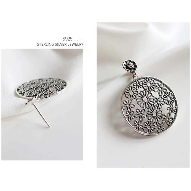 Retro Round Flower 100% 925 Sterling Silver Earrings Trendy Korean Stud Earrings for Women Silver 925 Jewelry YEA094