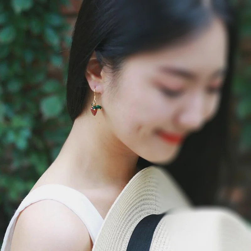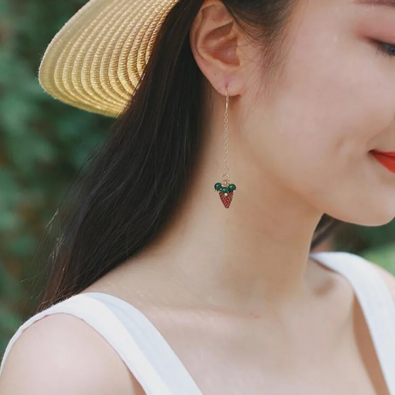Strawberry Natural Green Chalcedony Ear hook 925 Sterling Silver Women's Long/Short Hanging Drop Earrings Jewelry YEA210
