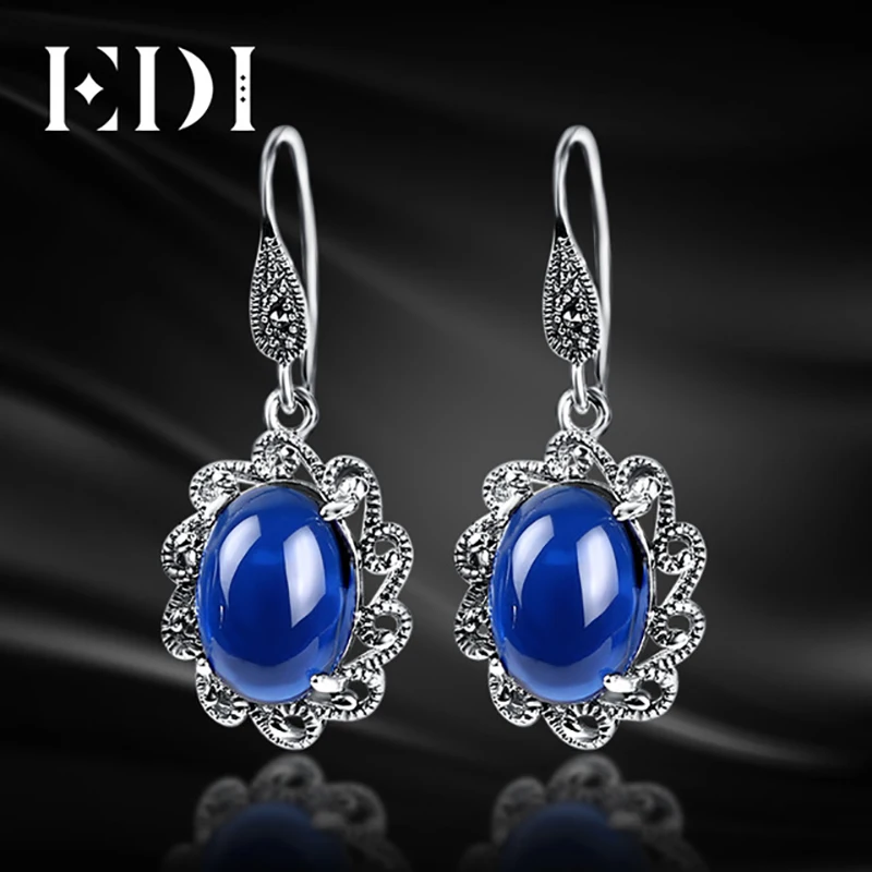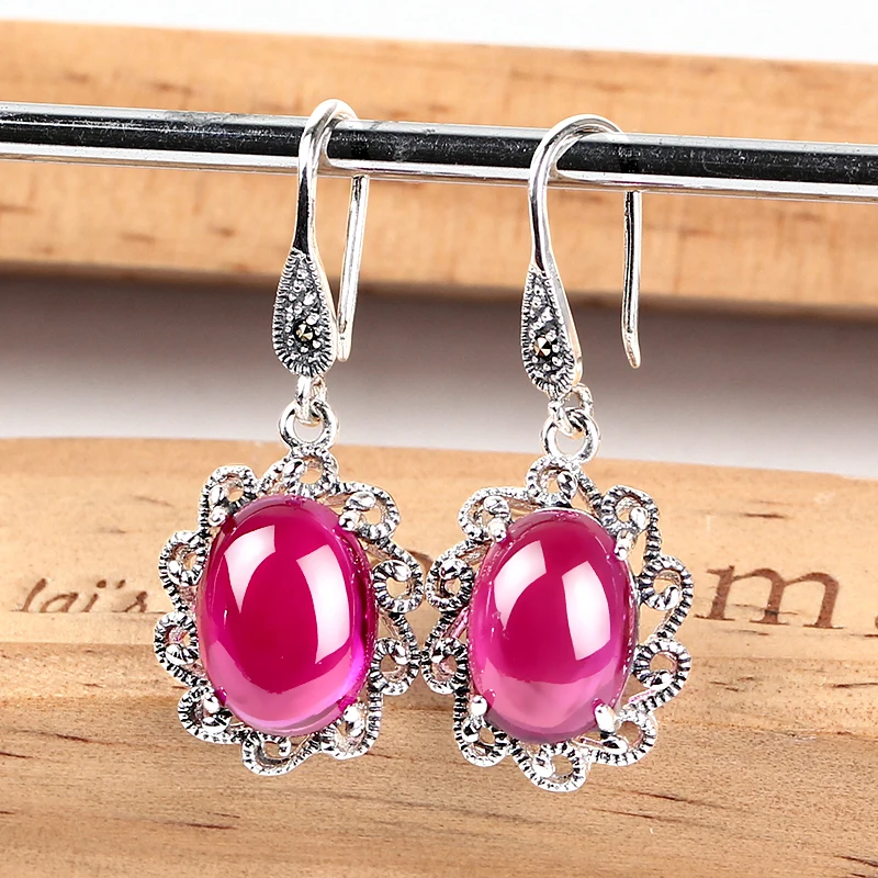 Women Trendy Agate 925 Sterling Silver Flower Drop Earrings Vintage Bohemia Dangle Earring For Women Bijoux Femme Jewelry