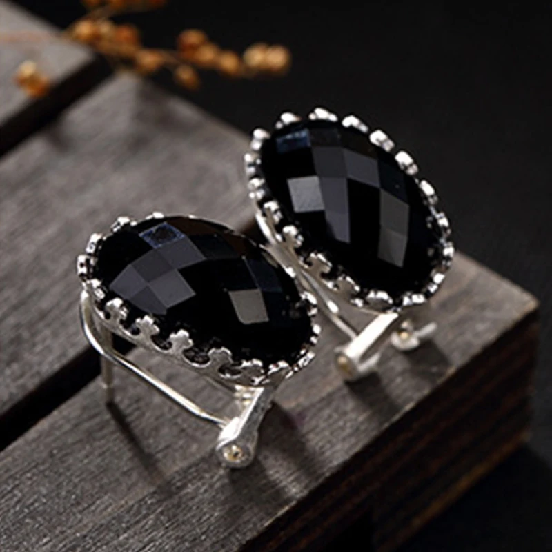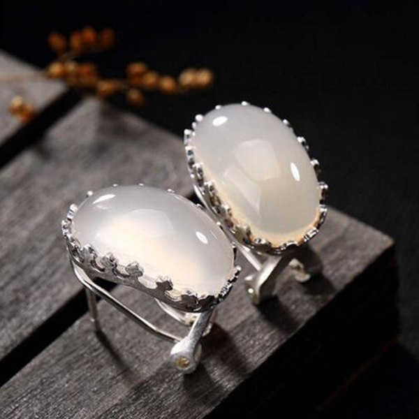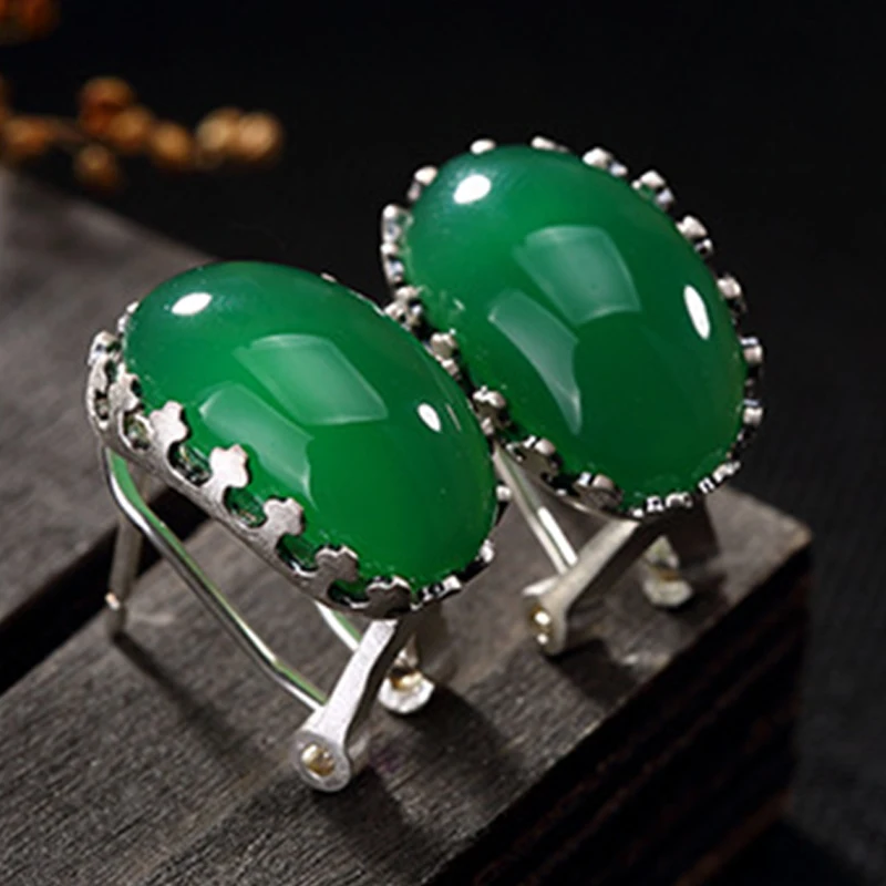 S925 Pure Sliver High-end Chalcedony Women Earrings Jewelry Fashion Elegant Wild Crown Inlaid Earrings Jewelry Gift for Lover