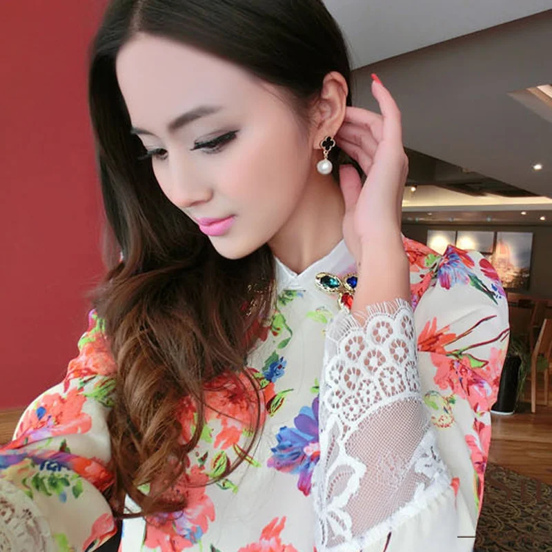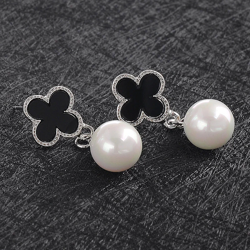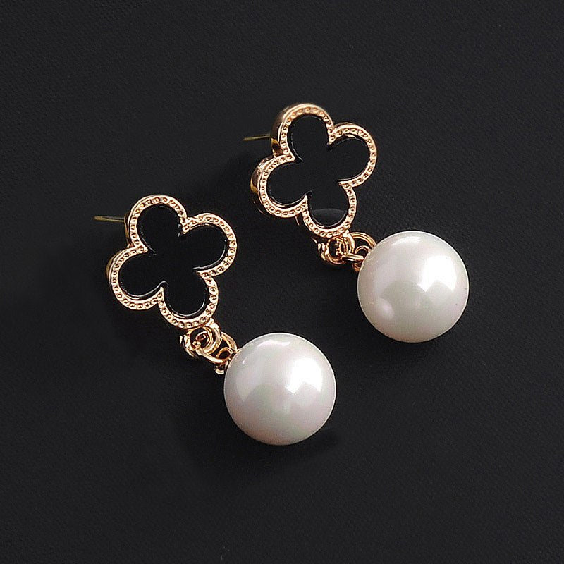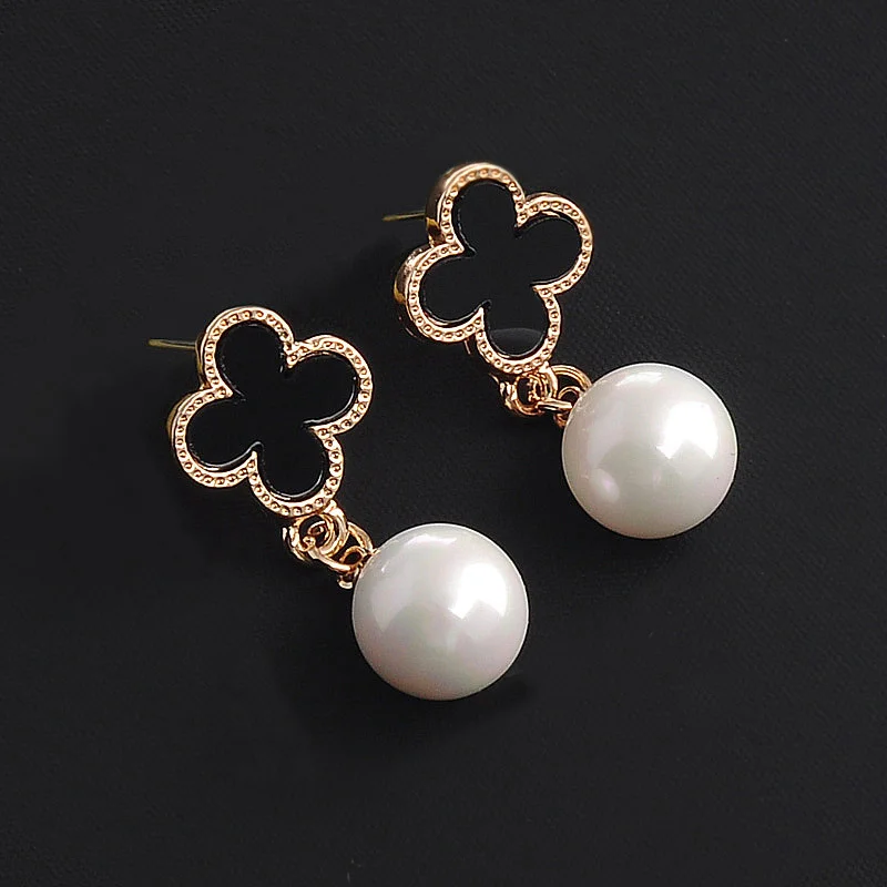 S925 standard silver The New four-leaf clover pearl earrings Europe and the United States simple Prevent allergy