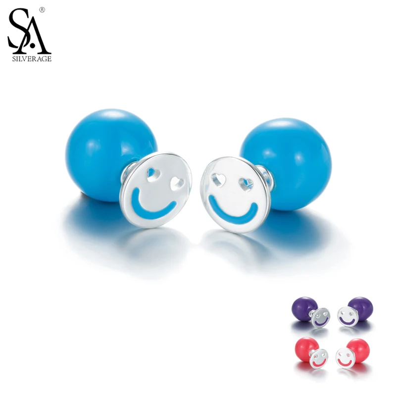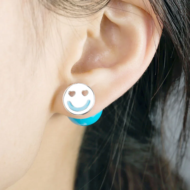 Round Smiley Face Stud Earrings Women Fashion Fine Jewelry 925 Sterling Silver Stud Earrings for Gift