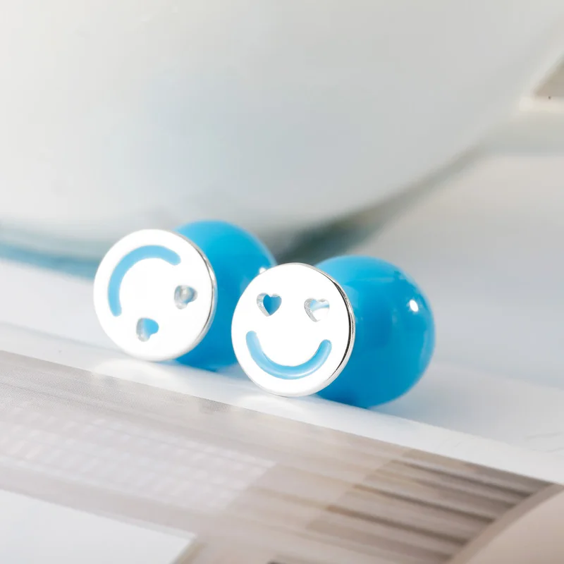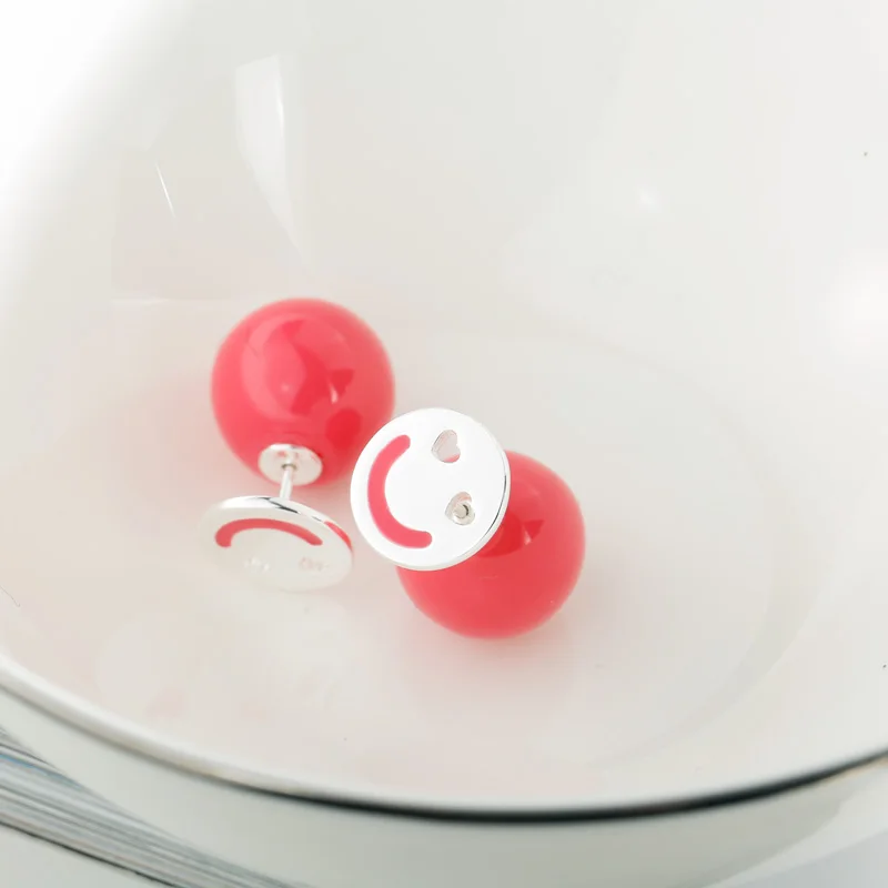 2020 New Design Real 925 Sterling Silver Round Stud Earrings for Women Smiley Face Ball Double Sided Fine Jewelry