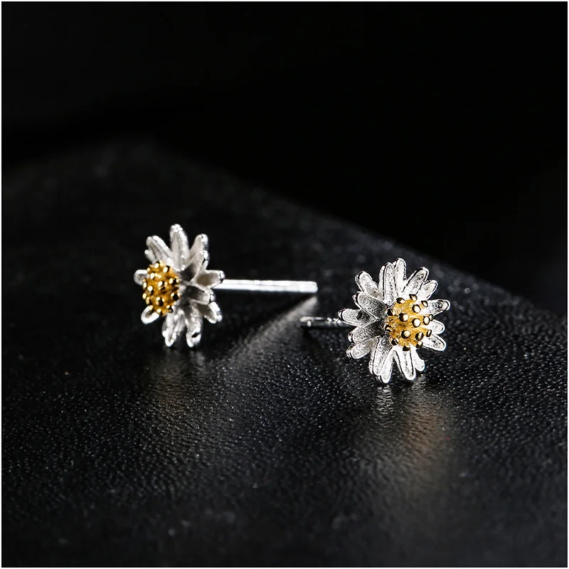 Trendy 100% 925 Sterling Silver Darling Daisy Stud Earrings Beautiful Flower Earring For Women Girls Fine Jewelry Gift