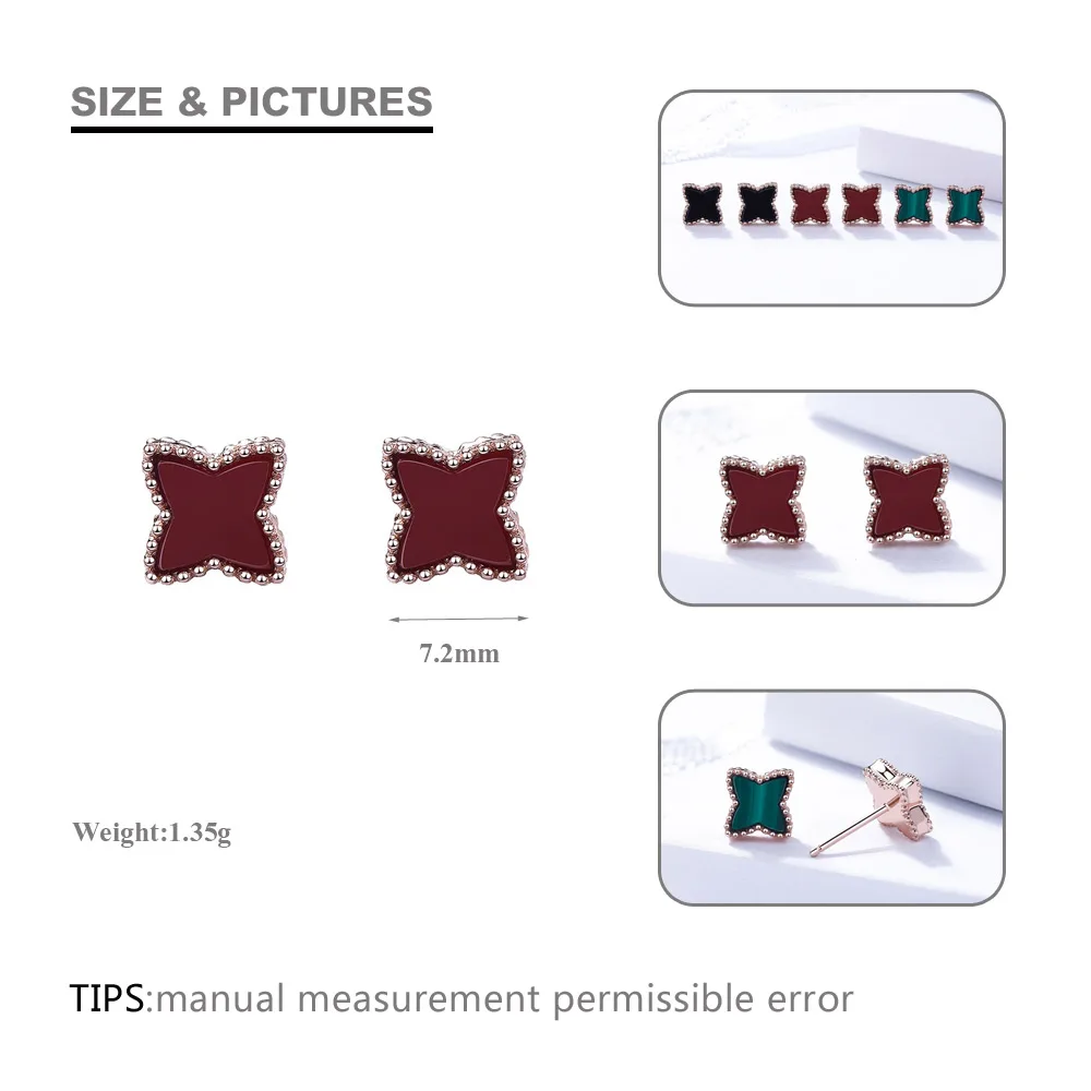 925 Sterling Silver Red/Black Agate Stud Earrings for Woman Green Malachite Geometry Silver Star Earrings New