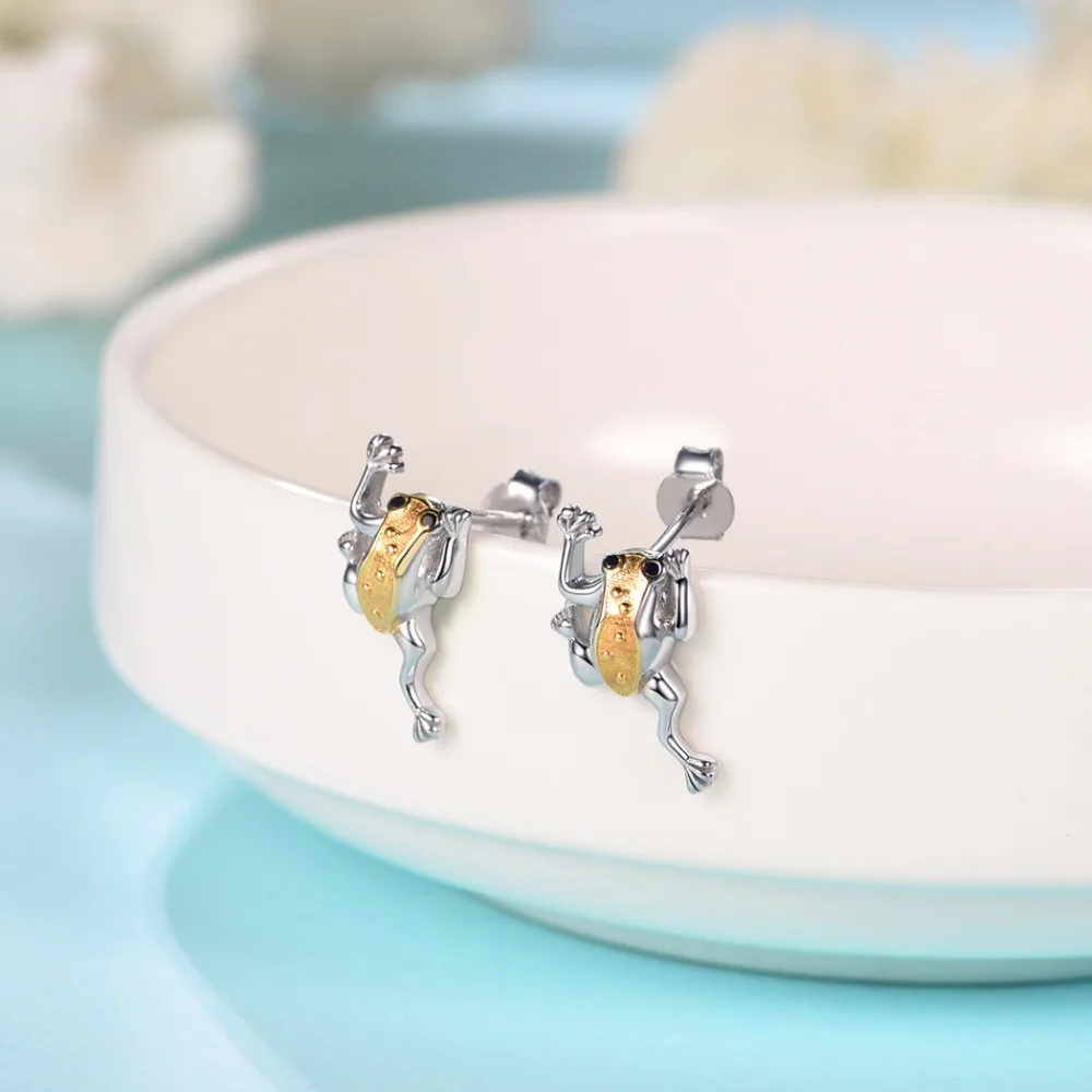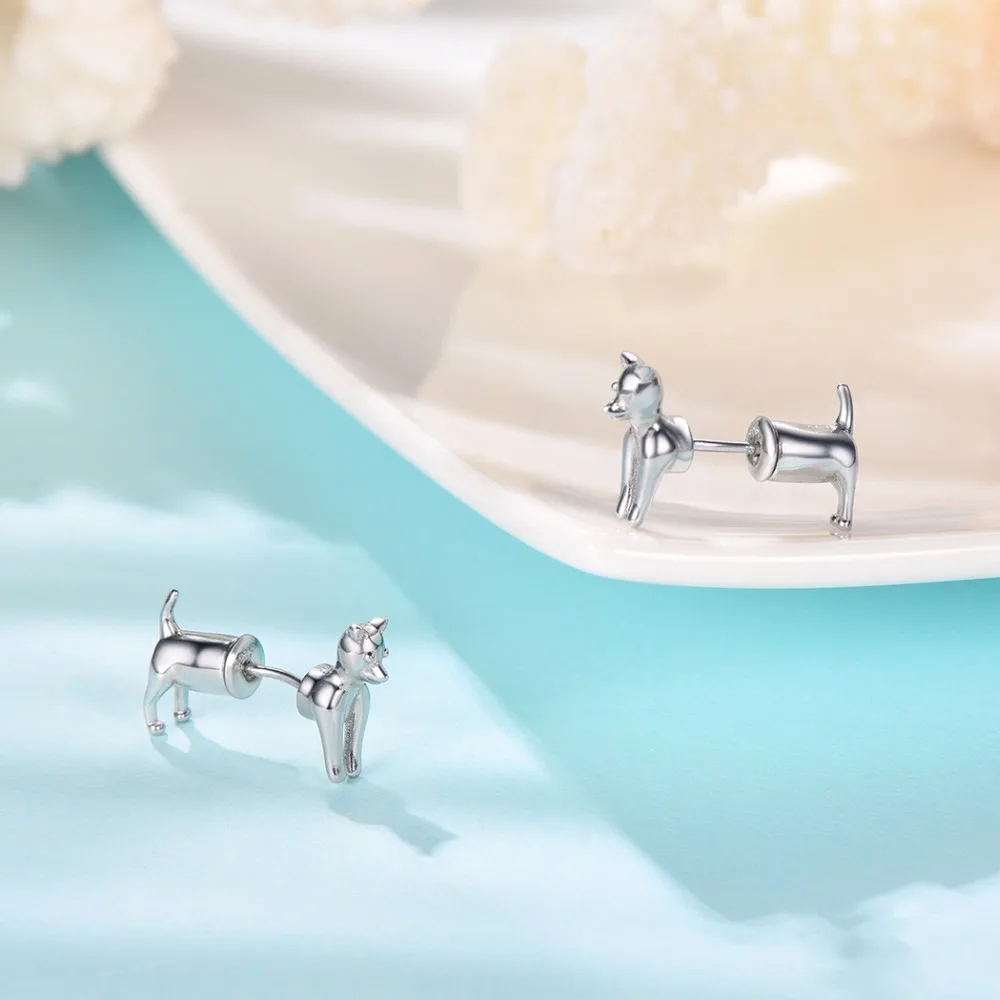 Cute Dinosaur Frog Chihuahua Dog Pet Animal Stud Earrings For Girls Genuine 925 Sterling Silver Fine Jewelry SCE6245B